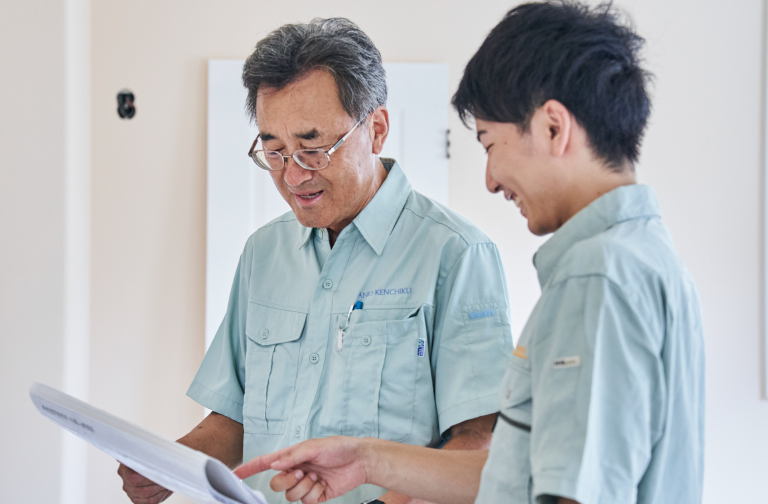 建物完成後のアフターフォローとして、1年目・5年目・10年目に定期点検にお伺いします。10年目以降も点検のご案内を5年ごとに送付します。その他のタイミングでのご相談も、お気軽にご連絡下さい。