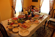 見てください!この料理とお洒落な飾り付け!!!正直、日本で、しかも一般家庭で、これほどまでのおもてなしをされたのは生まれて初めての体験で(手塚先生も同様だそうです)、とても感激しました。