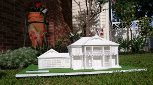 次男は大学のAO入試の為、明治村の研究プレゼンと建築模型で挑みました。プレゼンは自らが弊社スタッフにお願いし、スタッフの前で何度も練習を重ね、本番に挑んだ様です。(私はその練習に立ち会うことはありませんでしたが・・・)写真の模型は、手塚氏に制作するポイントを教えてもらいながら作り上げたものです。細かな部分は別として、高校生の素人が初めて作ったとは思えないその完成度に試験官、弊社スタッフも驚いたそうです。