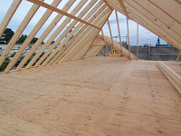 床の構造用合板は2階の床は張られるが、2階の小屋裏部分までは張られない。理由