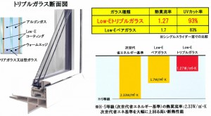 このトリプルサッシは次世代省エネルギー基準の約1.8倍の断熱性能があり、世界一厳しいサッシ性能基準のドイツ基準並みの性能があります。