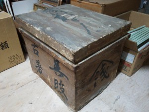 おじいさんの話によると私の三代前の職業は呉服屋だった様です。この箱は反物の収納する木箱です。母親曰く、昔はもっと沢山あったそうです。