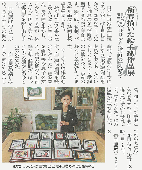 私の母親が安城ホームニュースに掲載されましたので、ご案内させて頂きます。日程は未定ですが、次回は、弊社モデルハウスにて作品展を開催予定です。