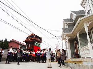 神輿の和と家の洋が絶妙にいい感じで融合しています。やはり和洋とスタイルこそは異なりますが、伝統的なDNAを踏まえたもの同士は実に素敵に調和しています。