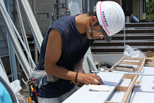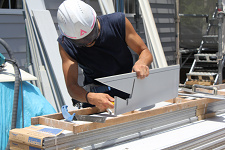 この知恵の輪の様な外装材の寸法を取って僅か4分程で切り抜いた。しかも、屋根の板金との取り合いもある為、知恵の輪の様に取り付ける必要がある。無理に入れれば外壁材は折れてしまい、余裕が有り過ぎれば見た目が悪い。人の目線からでは目を凝らして見なければ解らない部分ではあるが自分のプライドが許さない様だ。