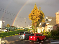 岡崎からの帰り道、超巨大でしかも二重の虹を運良く見る体験をした。写真を撮ろうと思わず畑の道端に車を止めると、畑仕事をしていた二人のおばさんが私と同じ様に大きな虹を見上げていた。(鮮やかな虹の外側にもうひと輪の虹があるのが分かりますか?)