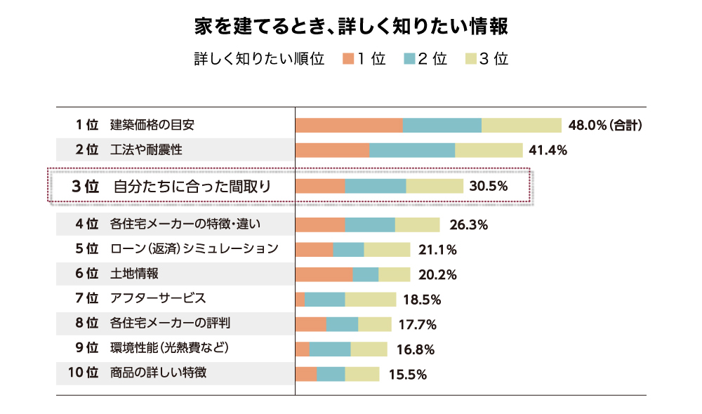 住宅を購入した方へアンケートを取ると家づくりのきっかけに、「自分たちに合った間取りを詳しく知りたい!」という声は多いんです。