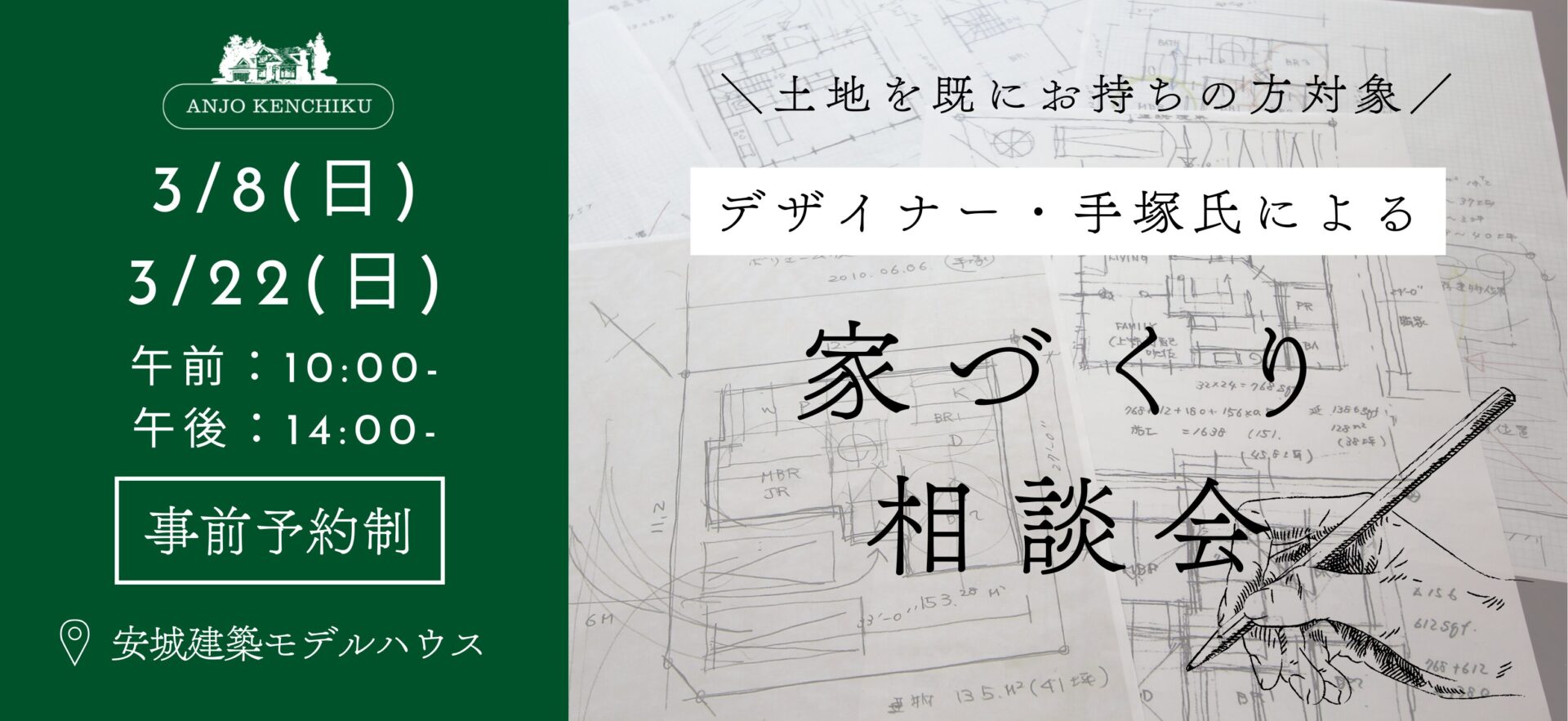 3/8(日) 3/22(日)デザイナー・手塚氏による家づくり相談会《事前予約制》