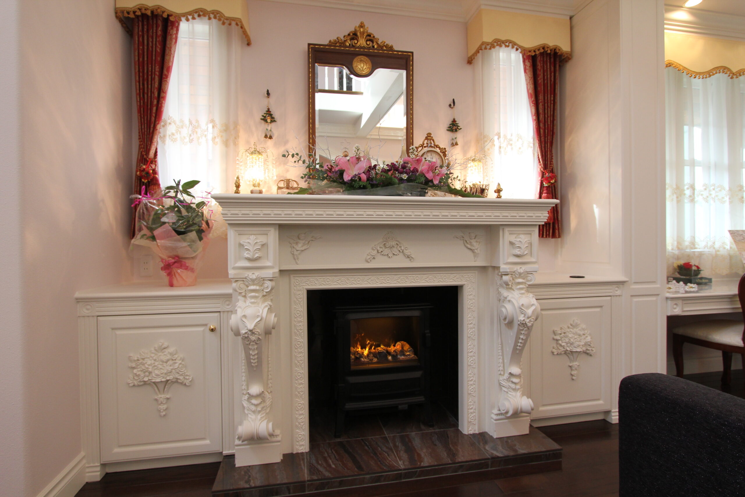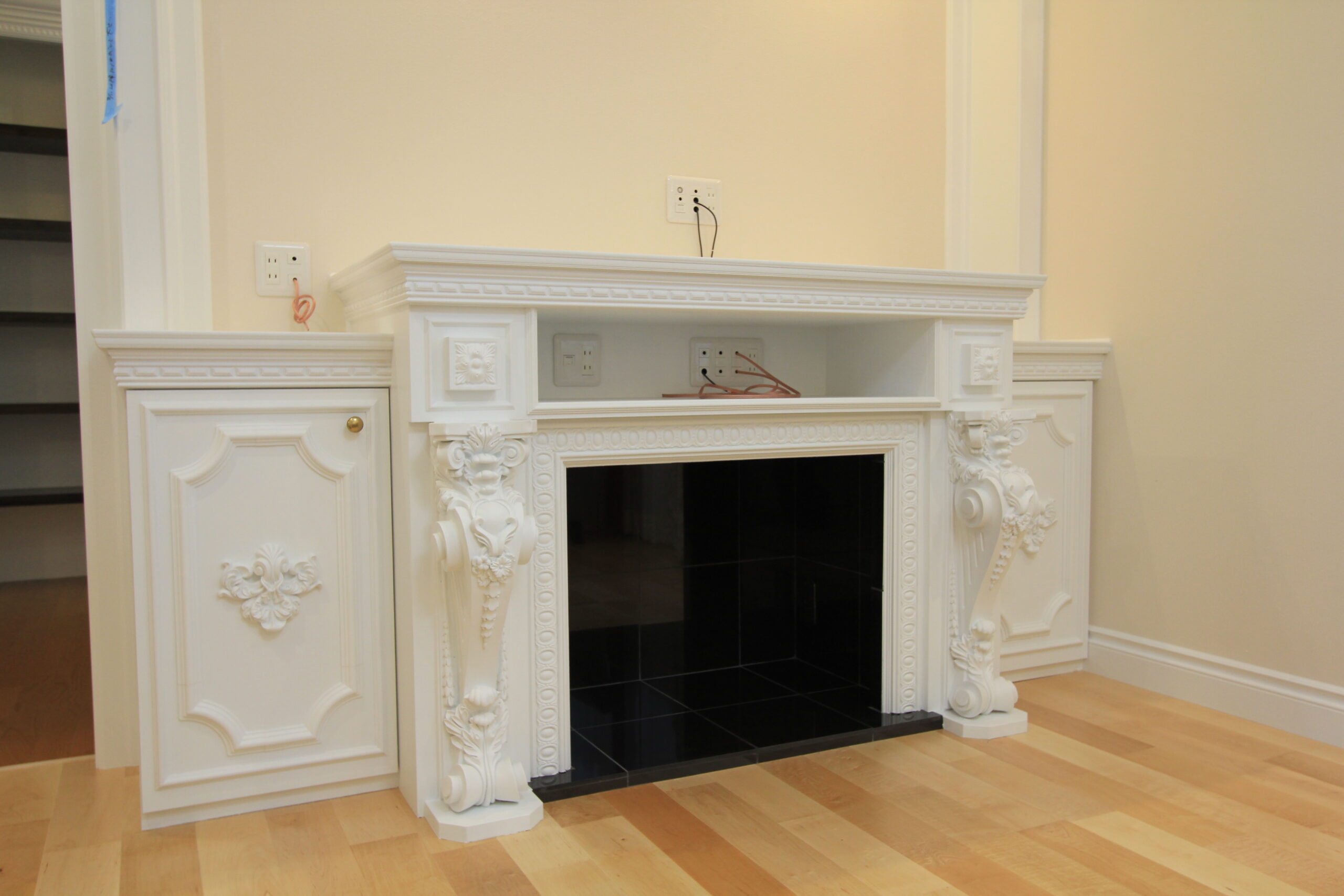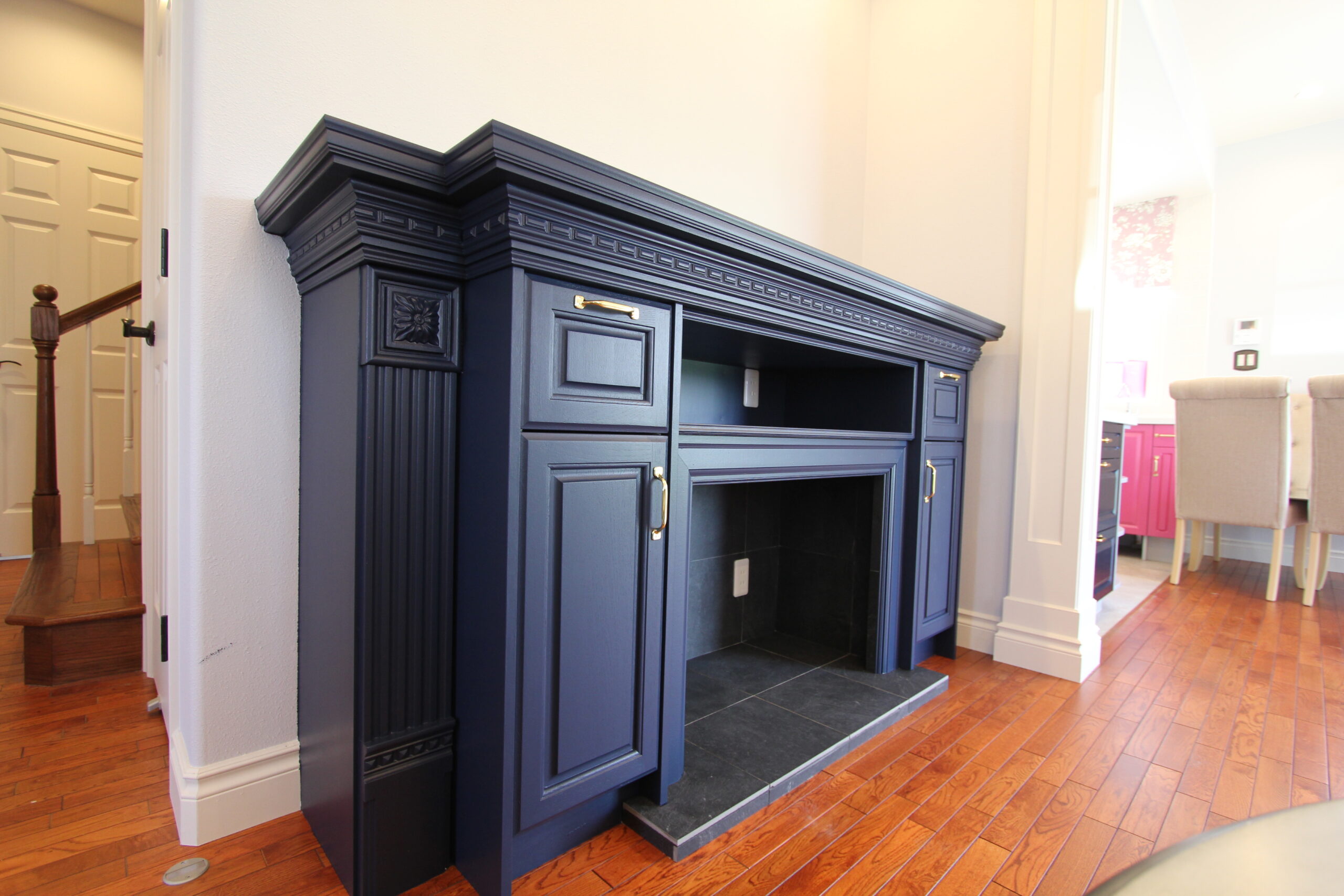 大工造作家具とはその名の通り、大工が手づくりする家具類のことです。本棚、テレビ台、収納棚、マントルピース、ドアヘッドなどは、建物に合わせて造り付け家具としてつくることで、雰囲気とのマッチングと、設置箇所に寸法をピッタリ合わせることで限られたスペースを有効的に使うことができます。