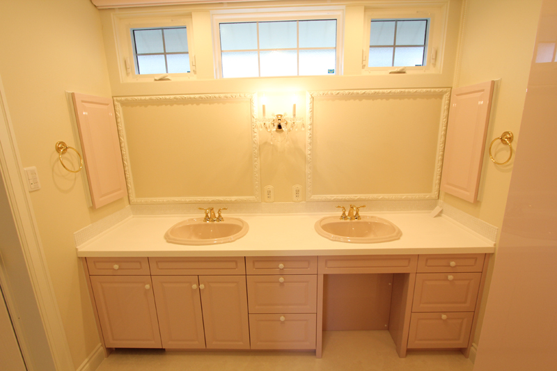 さらにおしゃれな鏡や照明器具をつけると、見た目は随分と違ってきます。 機能以上におしゃれさを優先したい方には、輸入洗面化粧台、または洗面器や水栓金具を輸入品で選び、カウンターを造作仕上げする洗面台で対応することもできます。美しさのある洗面化粧台は、一日のはじまりから気持ちを変えてくれることでしょう。