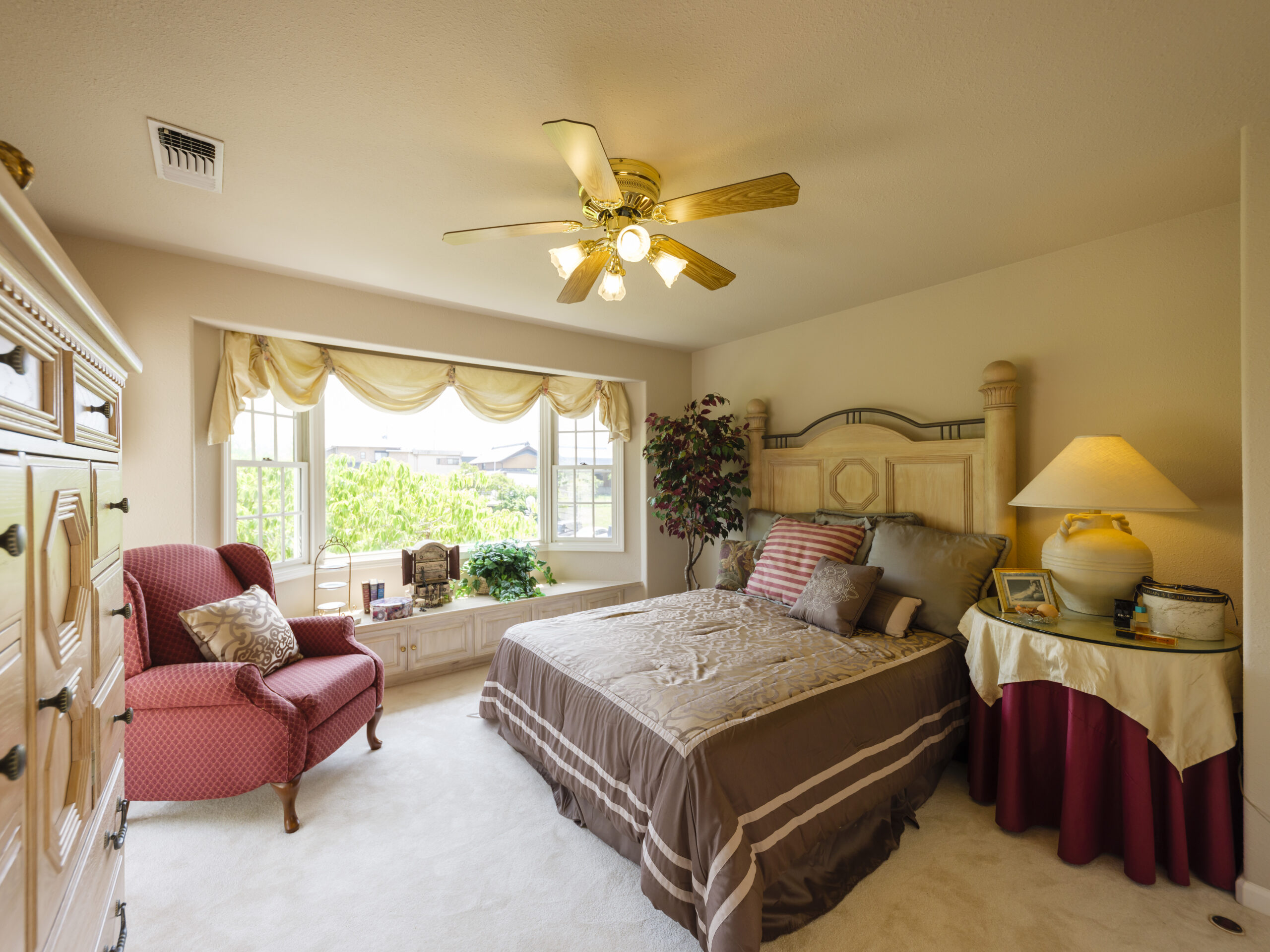 このベッドを覆うスプレッドは、カーテンと同じように部屋の印象を決めるほど大きいものです。