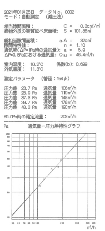 2021年1月25日東浦町・Y様邸で気密測定を実施した結果・・・