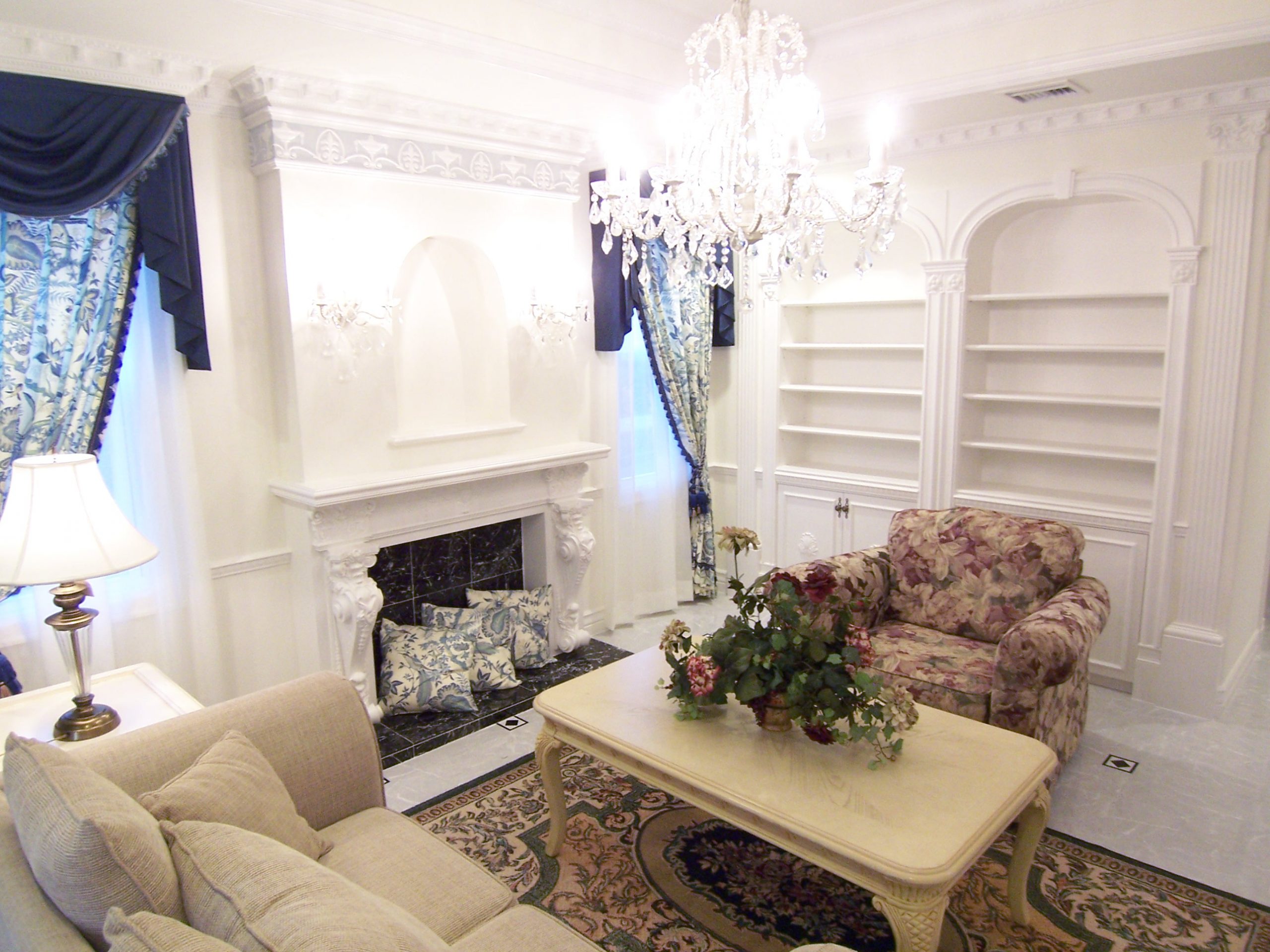 インテリアコーディネーターのスケッチを もとに忠実に制作されたマントルピースと本棚