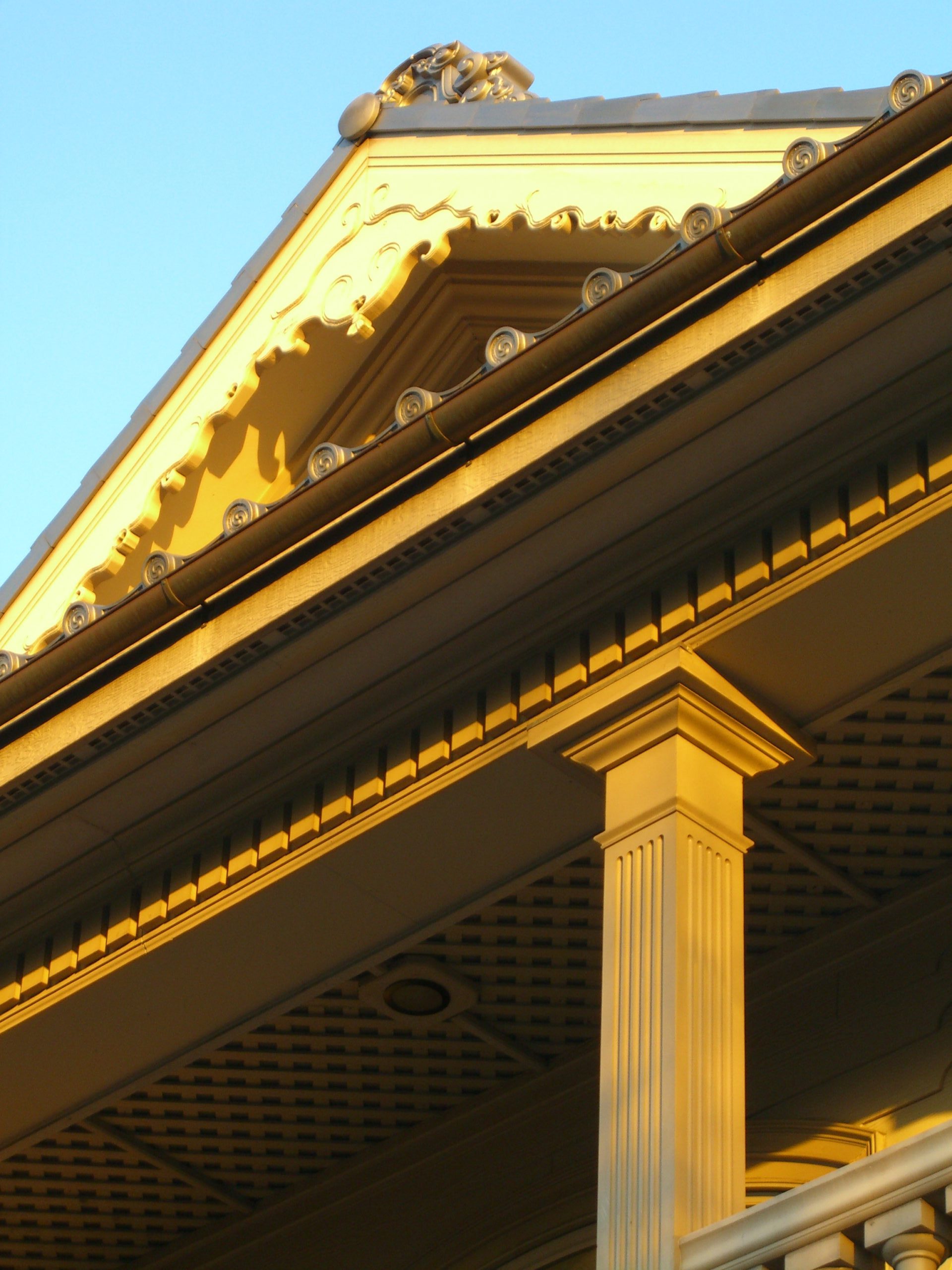 古い明治洋館の写真をもとに型作りし、再現された破風