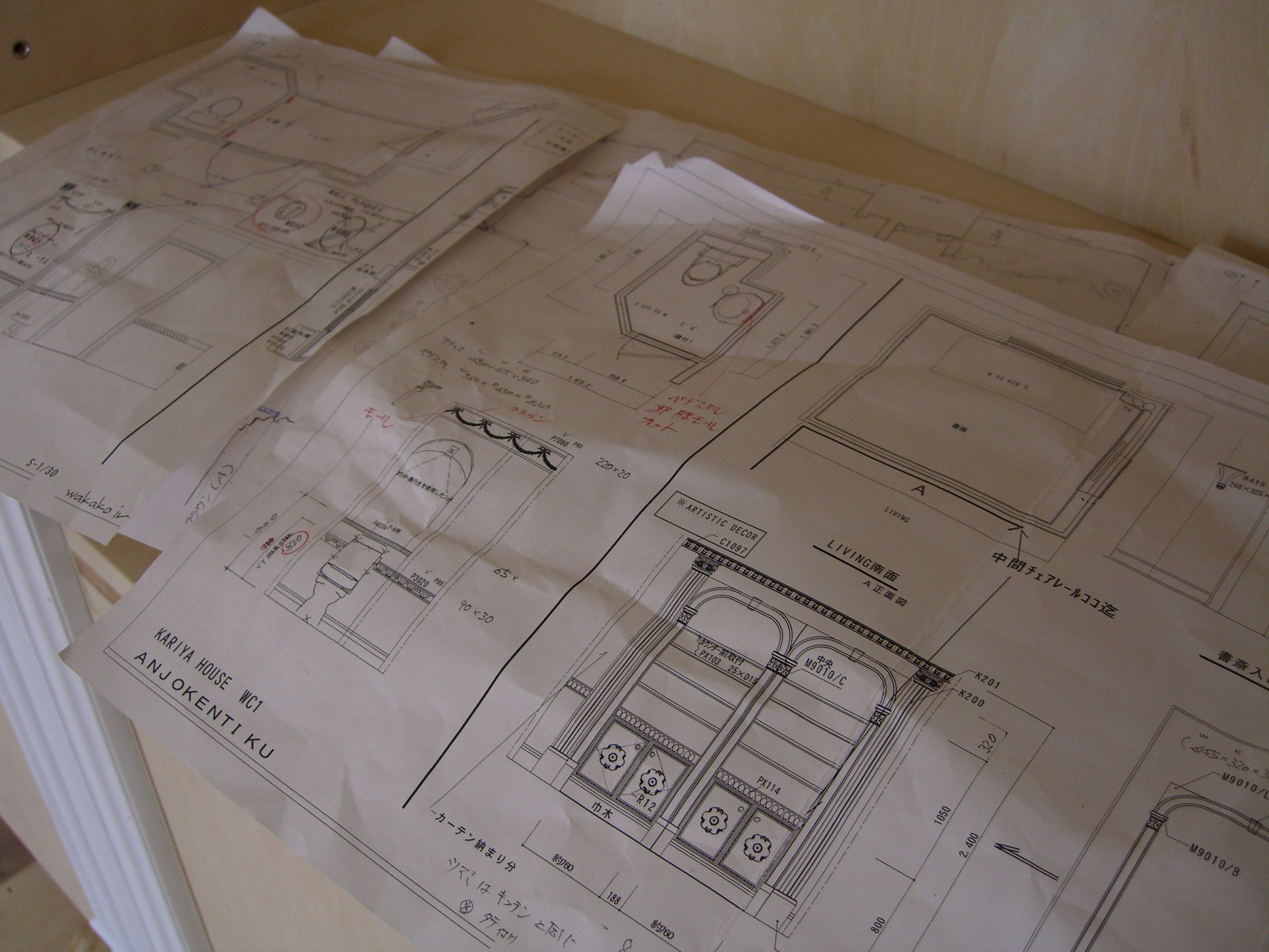 そのため、現場監督は建築家(デザイナー)の指示書をもとに長期にわたるメンテナンスフリーを考え、施工図を描き、直接職人へ伝達します。