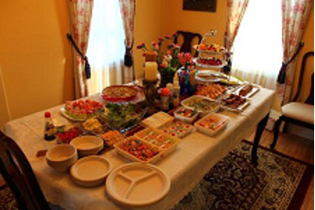 テーブルに並べられた豪華な食事は、U様の奥様筆頭に皆さんが持ち寄ったお料理で、どれもとても美味しく、食べきれないのが本当に申し訳なく残念でした。