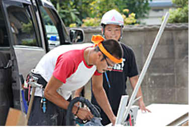 週末の土曜日、息子さんがお父さんの仕事を真剣な眼差しで見守る。普段のお父さんと全く違うお父さん(親方)の真剣勝負の姿に、何かを感じているに違いない。きっと将来安城建築の家づくりに欠かせない優秀な職人さんとなってくれると思う。