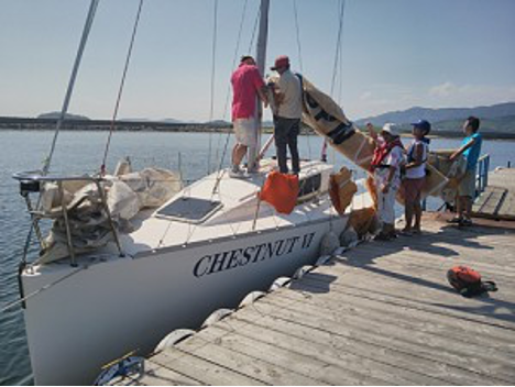 クルーの皆さん、複雑に交差するロープ等を手際よく操り、帆を張られる姿に感動しました。そして、S様からオーストラリアまでのヨットレースの話を伺うと、ヨットレースは極限状態での知力と精神力と体力とチームワークを求められることを実感しました。