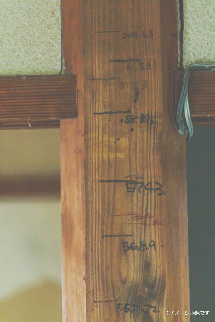 私の実家には築50年程の母家がありました。普段は殆ど使われていませんでしたが、唯一お正月とお盆には、家族が和室に集いました。その時、必ず確認してしまう一本の柱がありました。