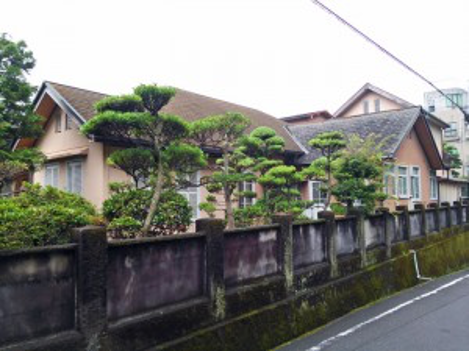 初めて通る道沿いに建つノスタルジーを感じる美しい和洋折衷の洋館に思わず目が留まります。何故か心が躍ります。この洋館も一端通り過ぎましたが、その魅力に引き寄せられUターンしていました。この時代の和洋折衷の洋館には華やかさと厳かさと今までに無かった新しい時代への意気込みさえも感じます。(木々があり写真ではこの建物の魅力が充分伝わらないのが歯がゆいです)