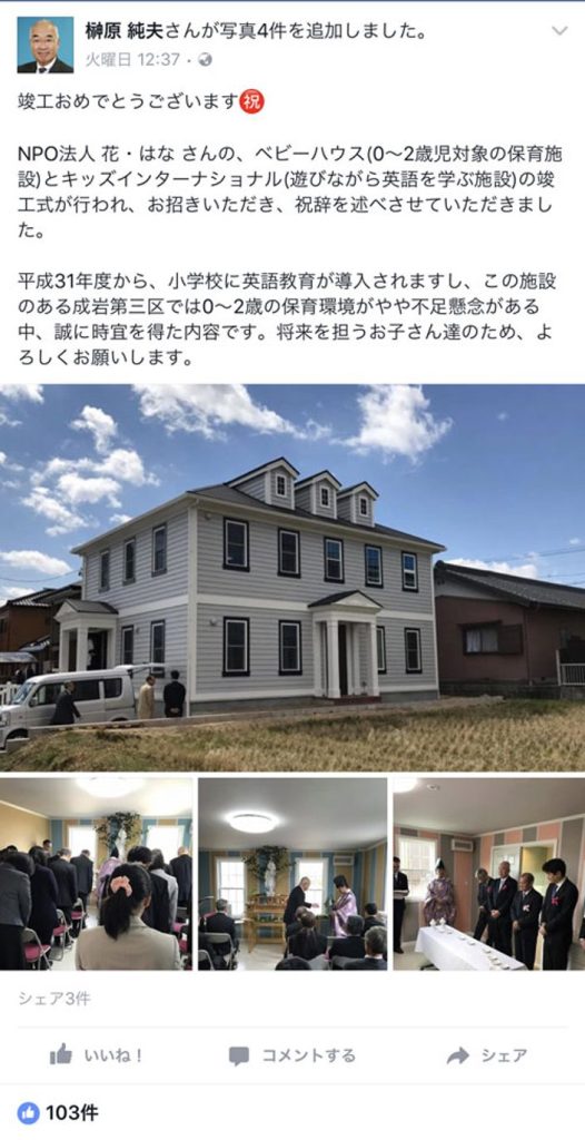 半田市の託児施設の竣工式には、市長様はじめ多数の行政関係者の皆様が出席して頂き、盛大におこなわれました。