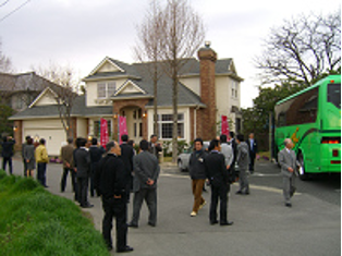 北は札幌。南は北九州から同業者の皆さんが観光バスで弊社モデルハウスを見学された。参加者の中には、輸入住宅フランチャイズ本部の重役の方もみえた。