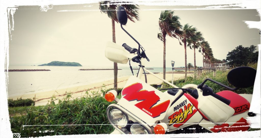 昨今、海辺の土地を探しに幡豆・吉良方面に時折出向いています。海岸の古い街は道が狭く、今回はモンキーバハ(30年前のバイク)で散策に行って来ました。モンキーは自転車以上の旋回性があり、車では見ることの出来ない世界を垣間見ることが出来てワクワクします。