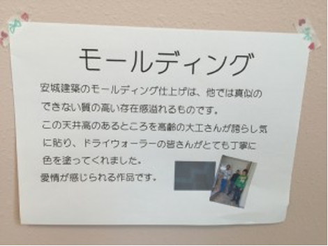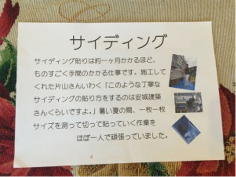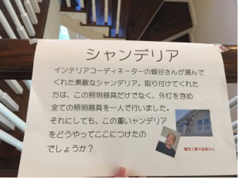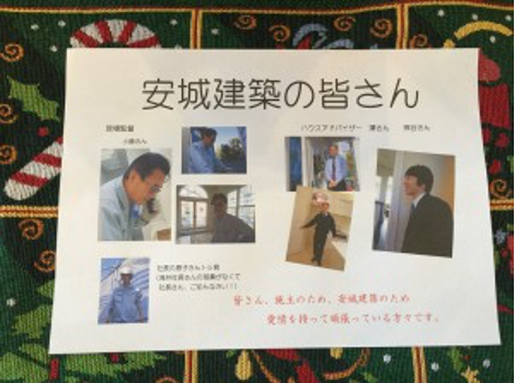 見学会には、お施主様自らが施工中の現場で職人さん達の写真を撮影して頂き、それをボップの様に壁に張って頂きました。職人さん達もさぞかし嬉しかったことでしょう。