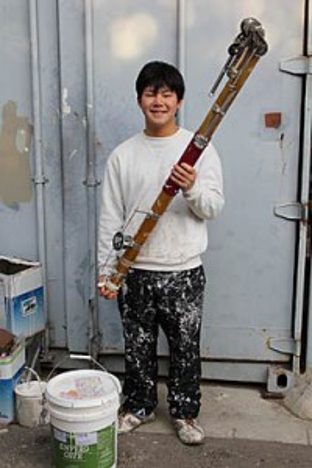 彼は若手ドライウォーラーで、今年の目標は、バズーカーという特殊な機械を使いこなせる様になることだそうです。この機械が手足の様に操れることで、一人前のドライウォーラーとみなされます。