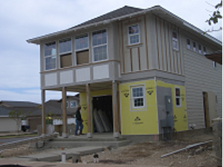 調和する家=他の家と全く同じでは無く、ひとつの区画に数パターンのデザインを採用し、細部の装飾や外壁材、色の配色等の組み合わせを換えながらそれぞれの家が主張をしながら調和を保っている。そして殆どの家が道路に面して美しく見える様に家の顔が造られている。