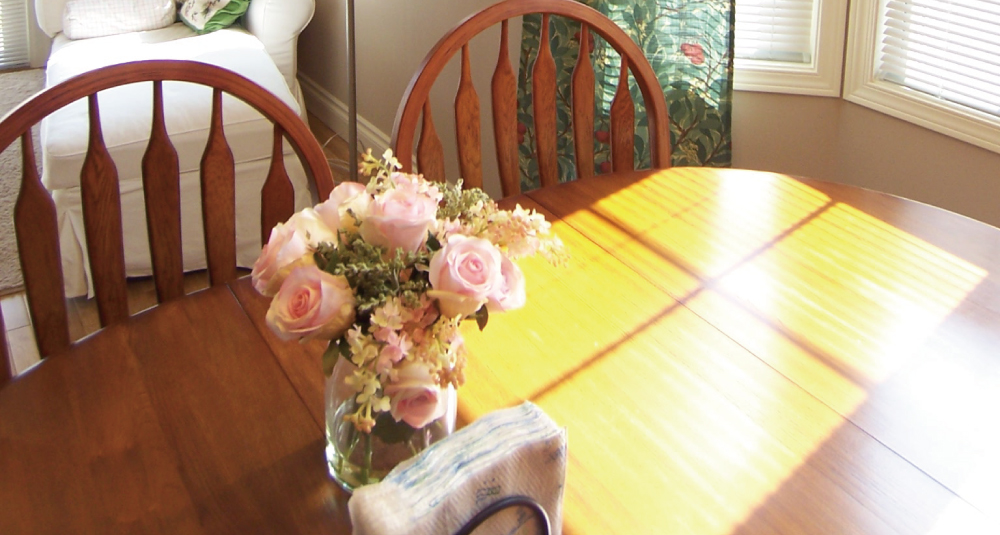 ダイニングテーブルに掛けて窓越しに見えるポーチの装飾や外の景色が、まるでリゾート地のペンションに来たようで、あわただしい朝でもホッと出来ます。毎日気分がよいので仕事のストレスを忘れてしまいます。それが一番大きいと思います。