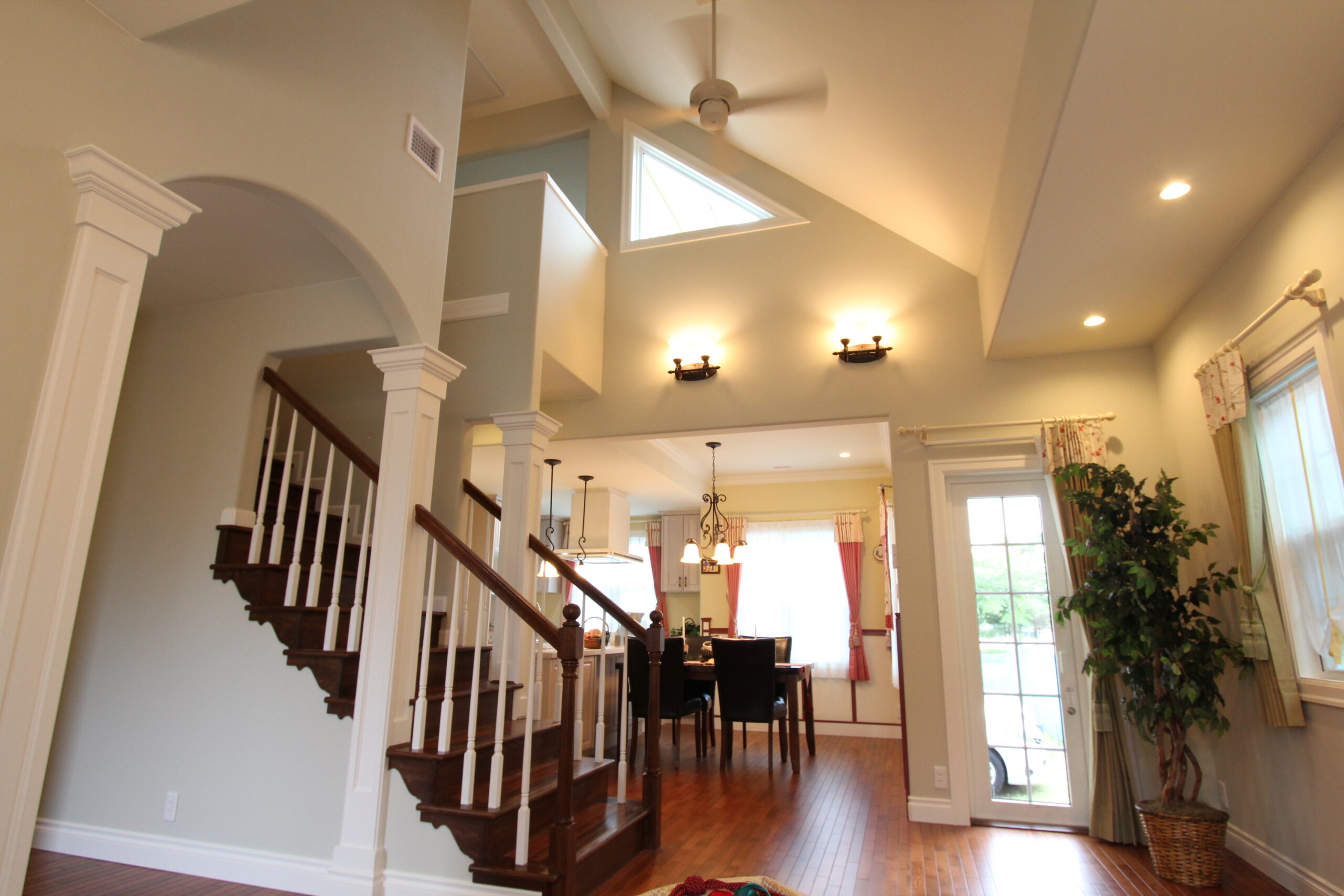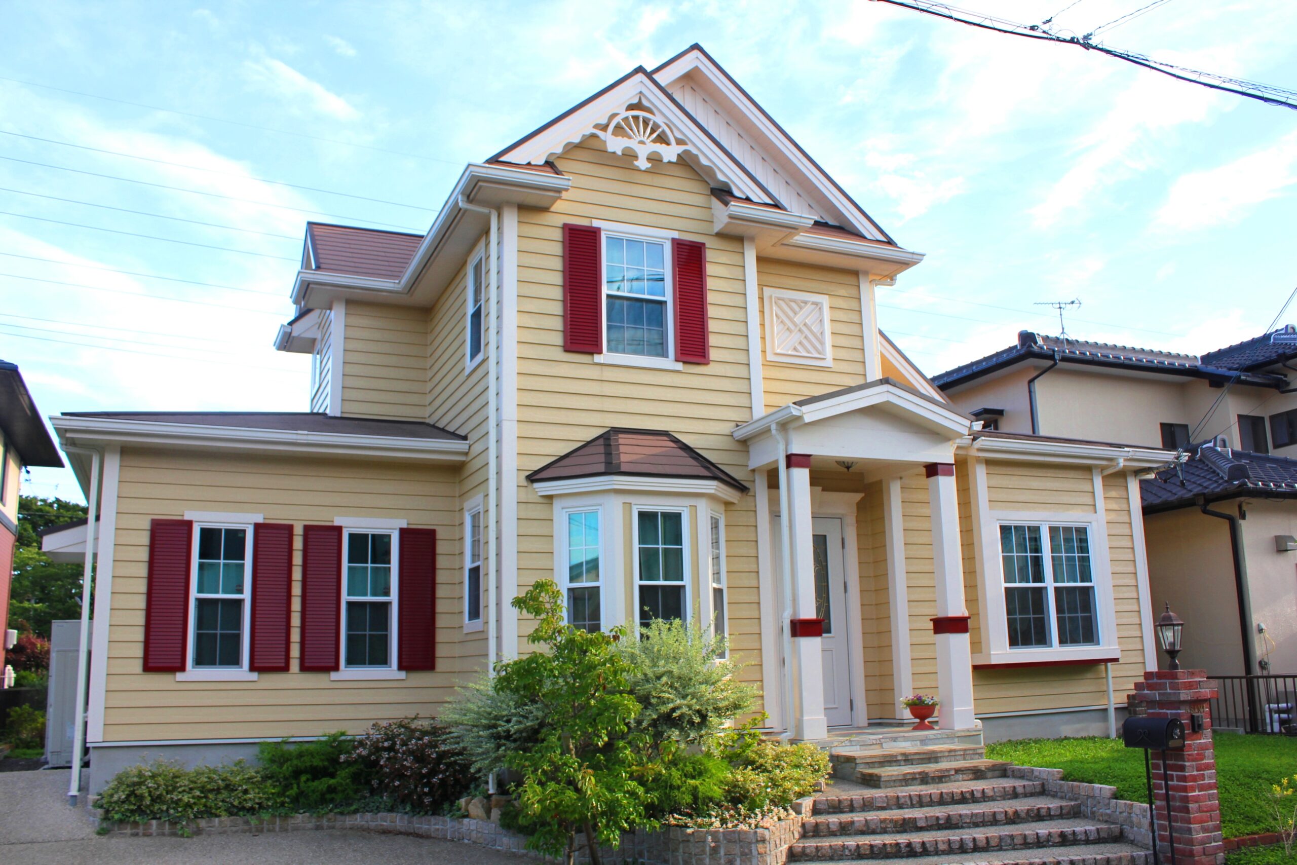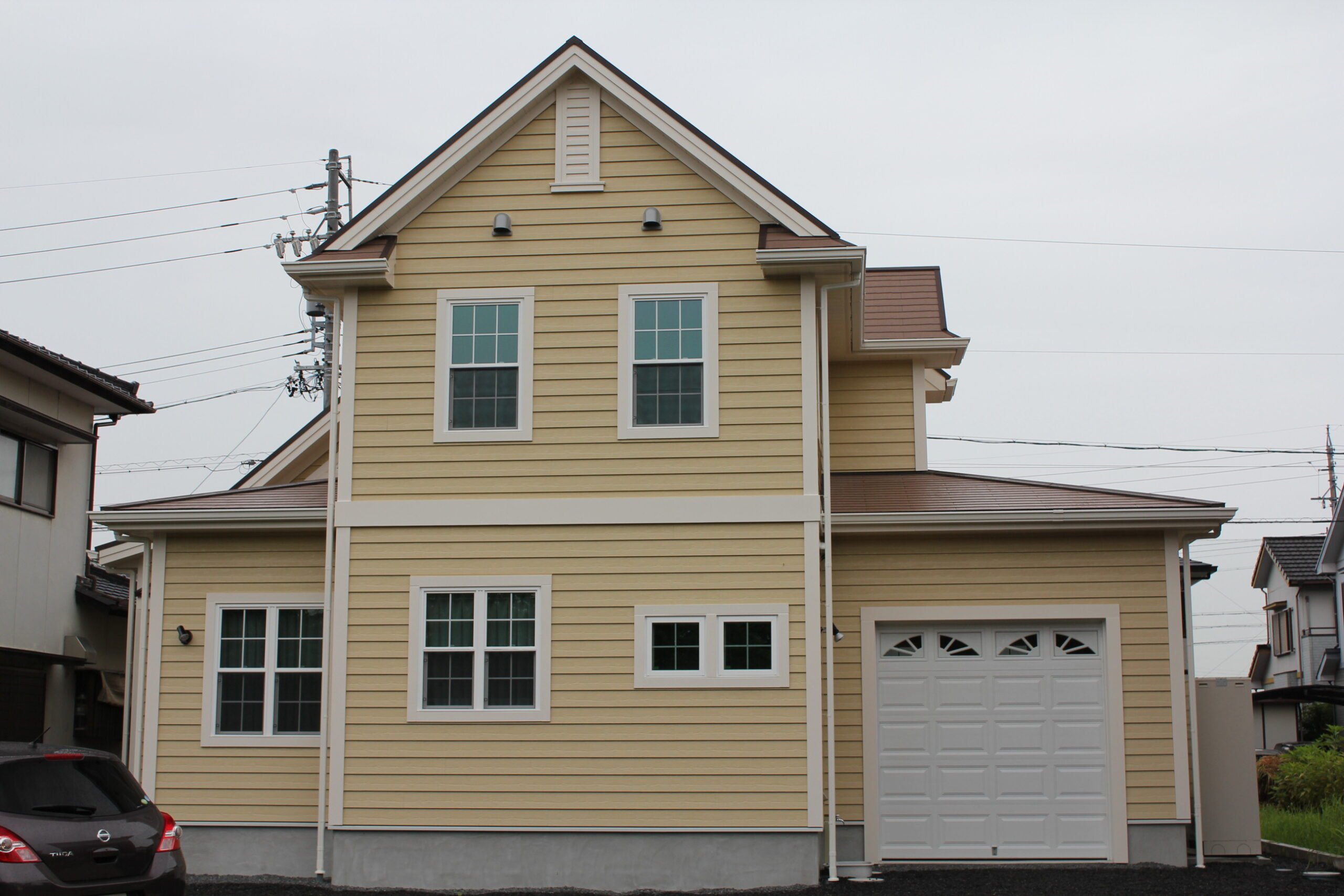 南側、北側、二方向の道路に面した好条件の敷地に、ビルトインガレージの素敵な家。1階部分の比率が大きい外観により、大屋根が印象的なボリューム感のある家となっています。2階は3ベットルームとトイレとし、1階にLDK、そしてバスルーム、洗面室が揃っています。愛情の込められた、奥様手づくりの素敵なアメリカンキルトをイメージして考えた室内は、日々の忙しさを癒してくれる魅力的な空間に仕上がっています。