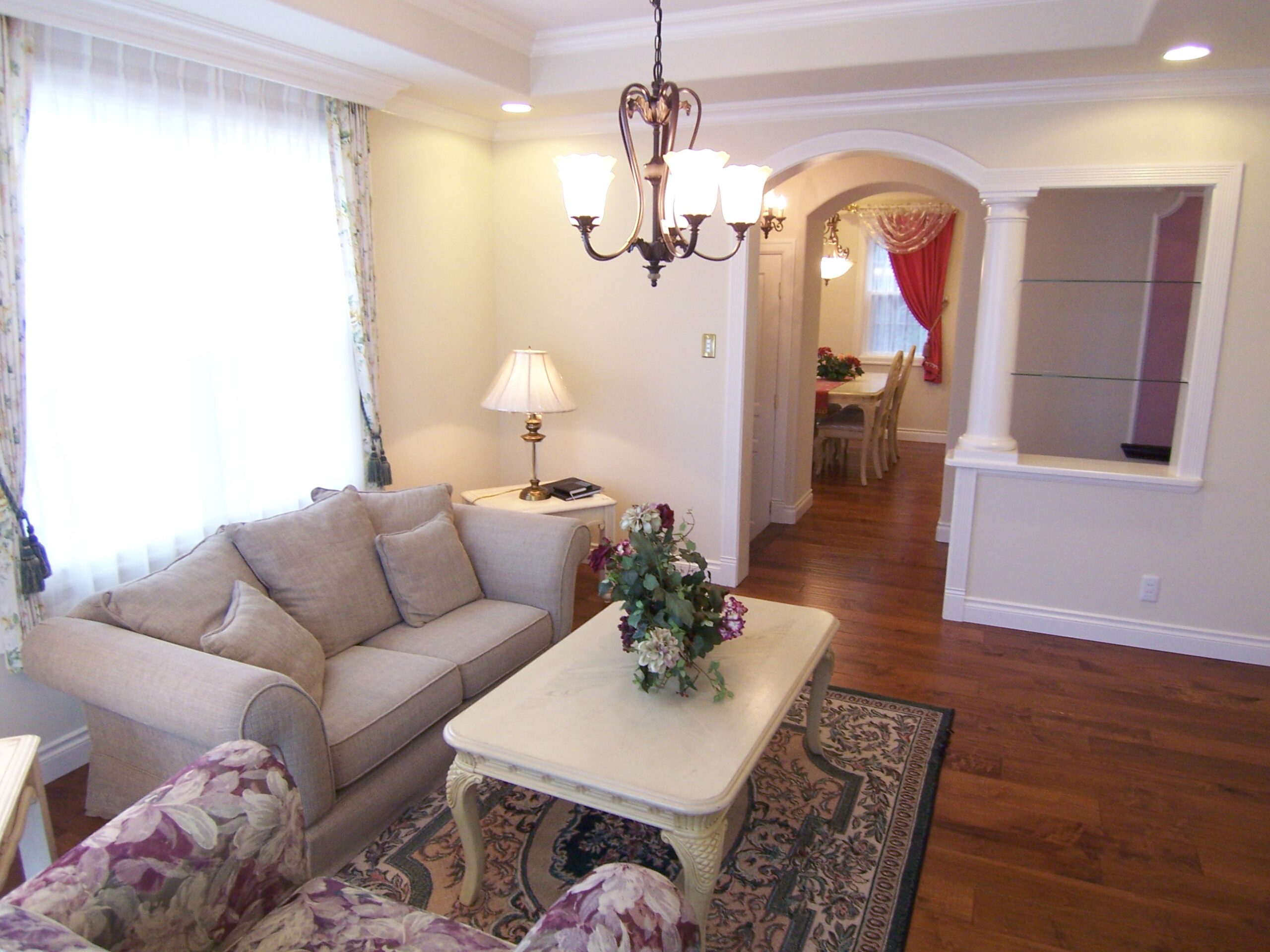 高台に建つ塗壁の家、屋根の傾斜の先がくるりと上に跳ね上がったデザインは外観の魅力をより深めています。2世帯住宅で、1階にメインのキッチンダイニングがあり、2階にはミニキッチンがあります。リビングは1・2階それぞれにあり、落ち着けるようになっています。