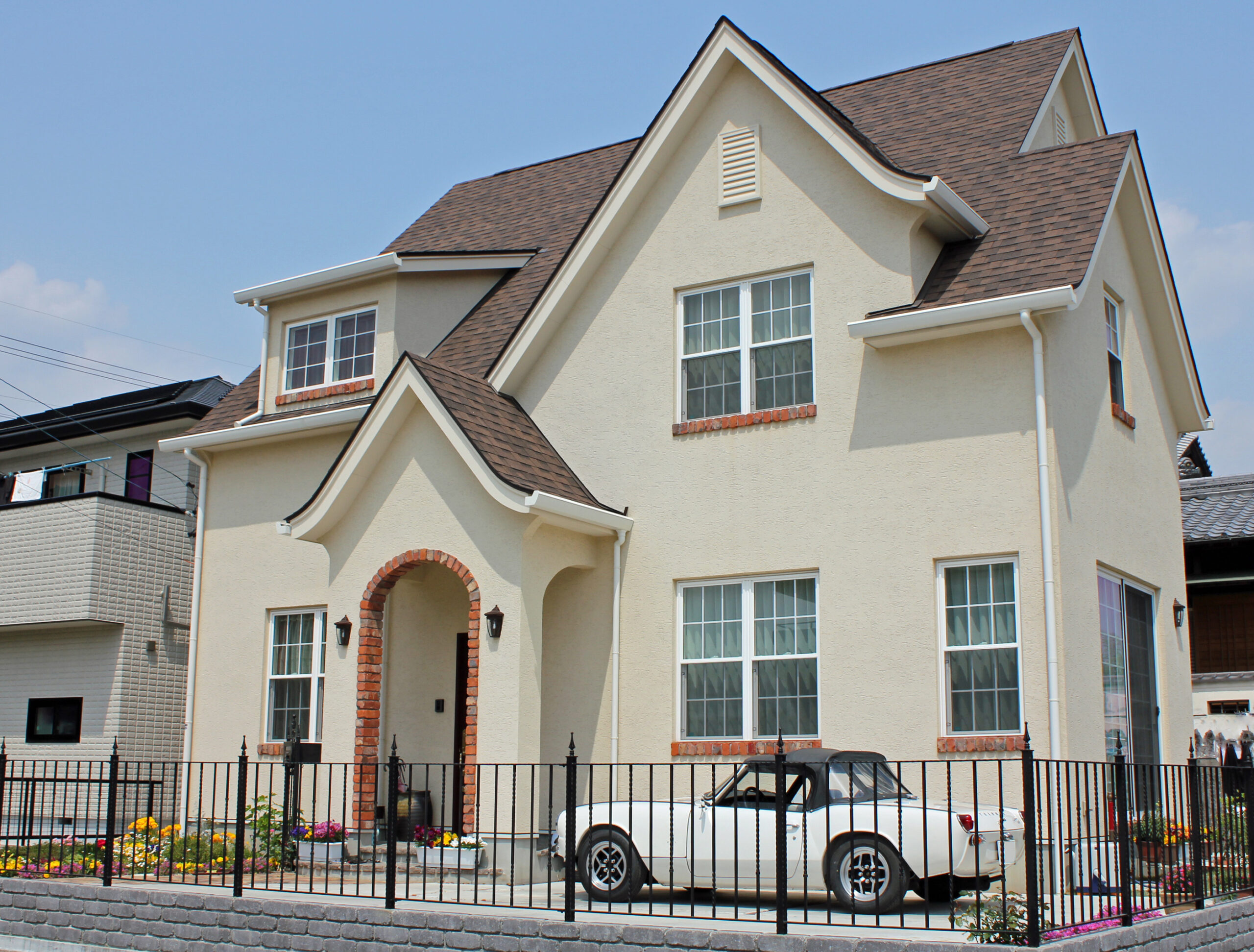 米国の建物が木目板を使った外壁のイメージに対して、ヨーロッパの国々の建物には、その気候風土から、塗り壁やレンガ、石で仕上げられた外壁のものが多く見られます。 英国、フランス、ドイツ、スペインなどの建物には、それぞれの国の気候風土や文化を背景とした建築様式があることから、建築様式を一つにまとめて表現することはできません。共通している点としては、外壁に使用される材料の他に、外観のデザイン面において複雑な形状ではなく、角の少ない四角で構成されたシンプルな形状があります。 米国の建物もヨーロッパの国々の植民地となっていた歴史から、その影響を受けた建物になっており、塗り壁、レンガなどによる外壁の建物をよく見かけます。しかし、ここでいうヨーロピアンスタイルの建物とは、塗り壁、レンガ、石による外壁仕上げで、段差や凹凸で外壁表面の変化を持たせたデザインの建物となります。 重厚感のある英国の建物、塗り壁で窓が整列しているフランスの建物、塗り壁と瓦屋根の組み合わせが特徴的なスペインなどの南欧の建物をヨーロピアンスタイルとしています。