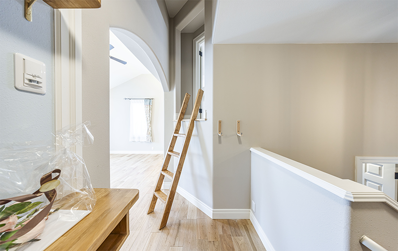 はしごで上がる自慢の秘密基地はお友達にも大人気。リビングと繋がっていて目が届く安心の場所というのもポイントです。