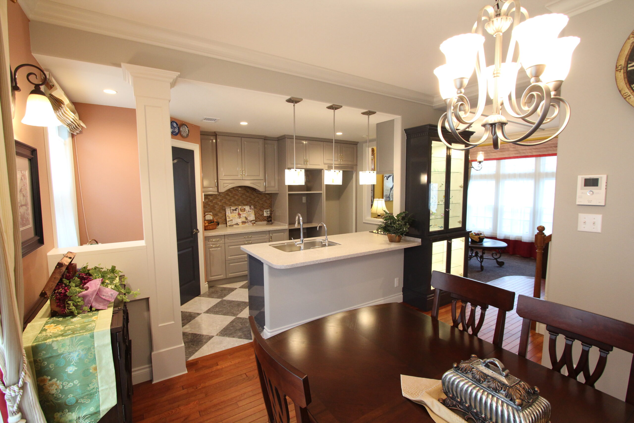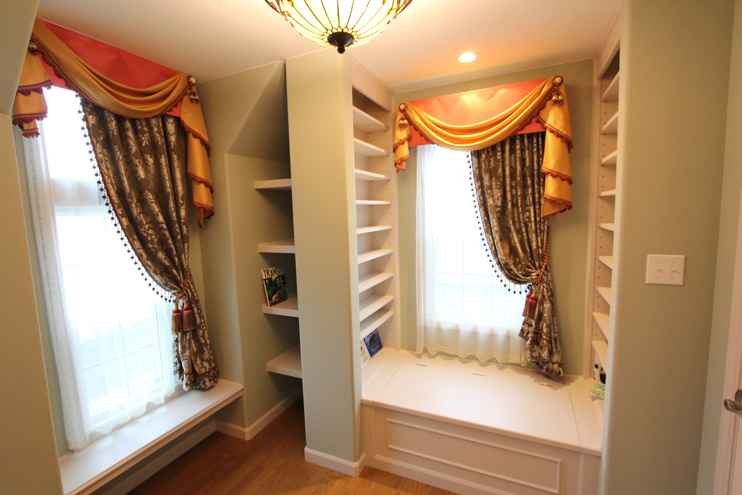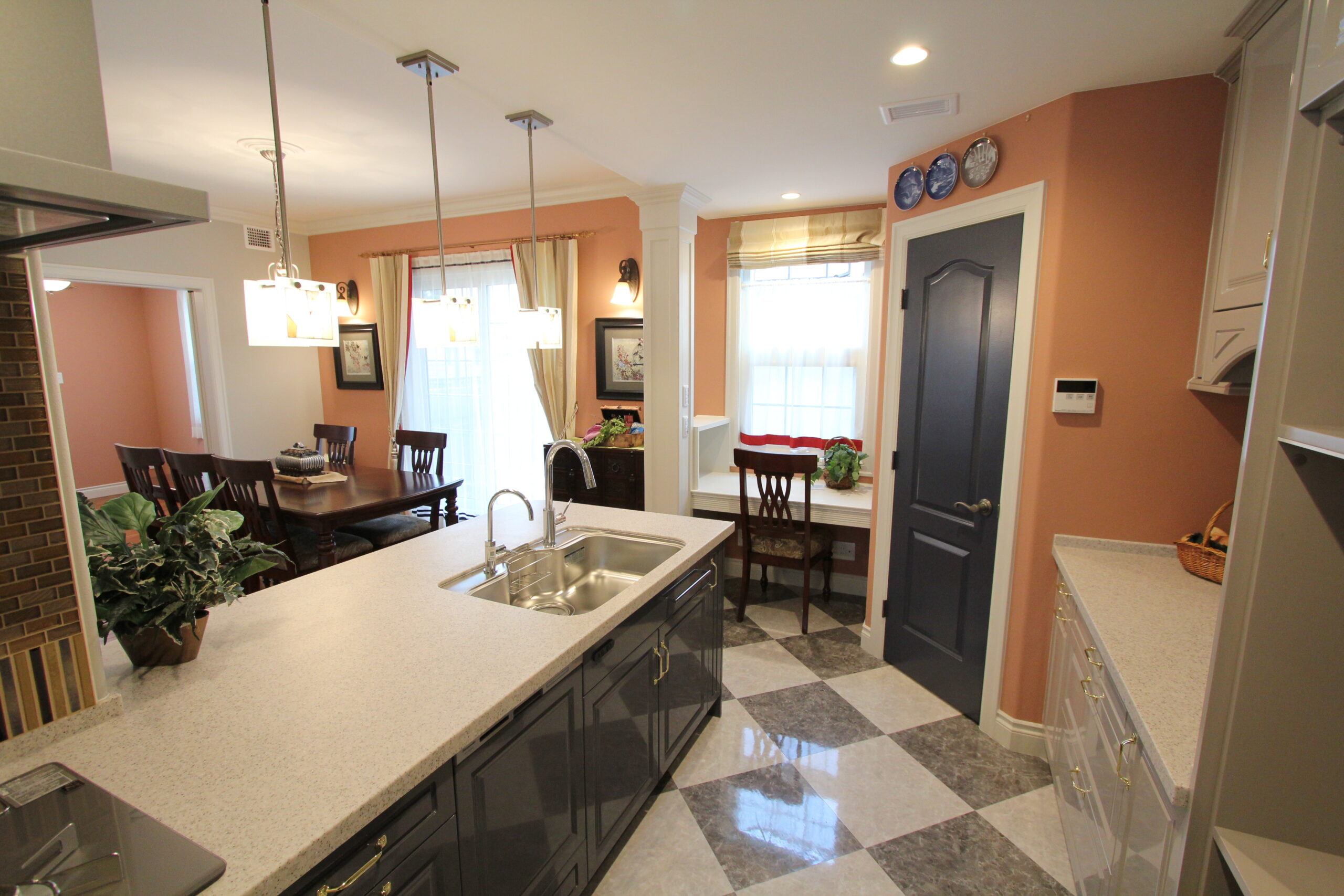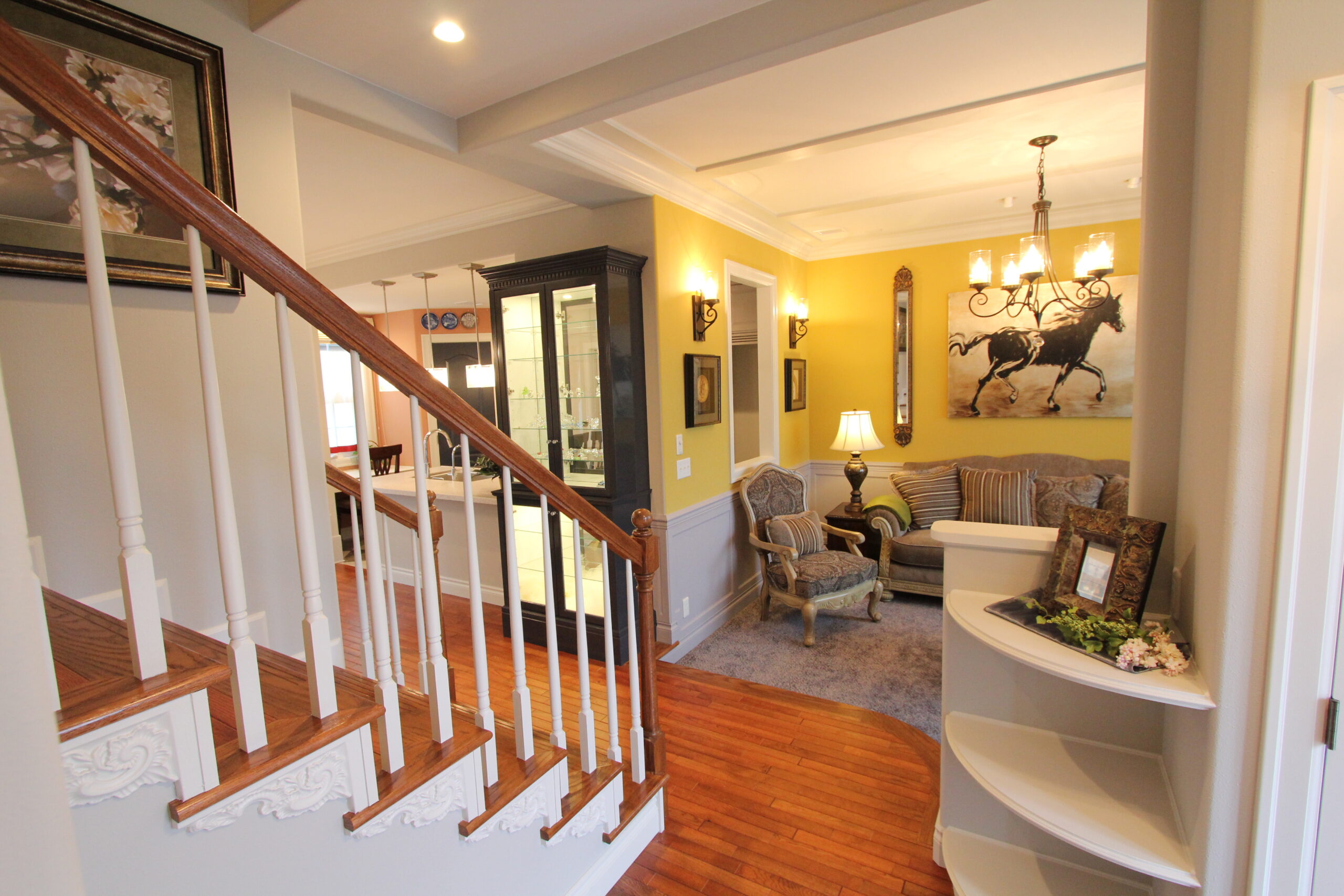 老若男女の道行く人が足を止め見上げていくほど魅力的な家です。玄関に入ると、オープンだが見えそうで見えない間取りになっており、リビングでのくつろぎを邪魔しません。リビングの段差・ホールの棚はアールに加工されており優しい雰囲気になっています。