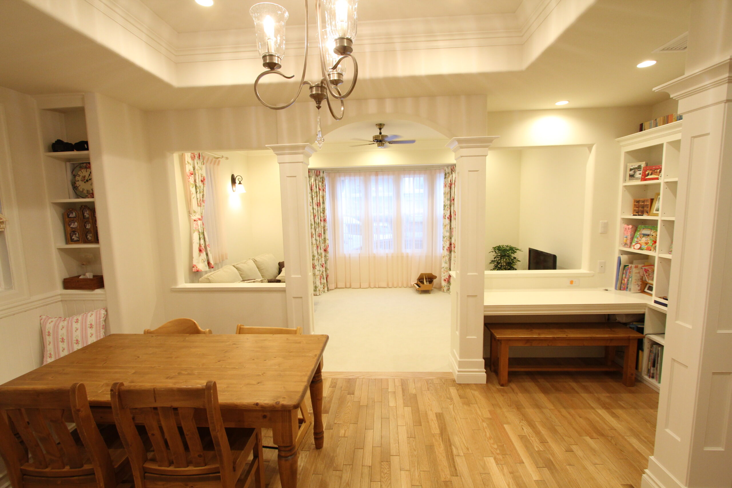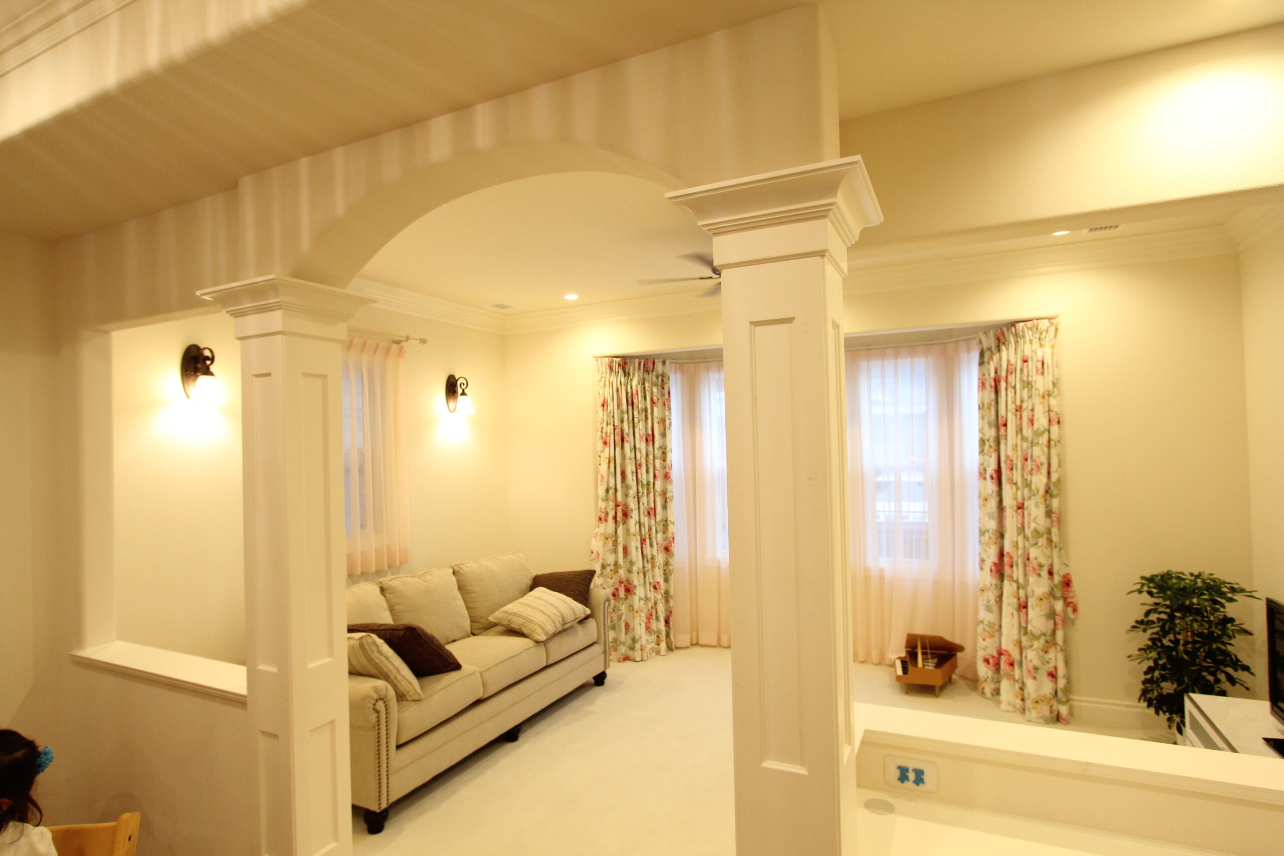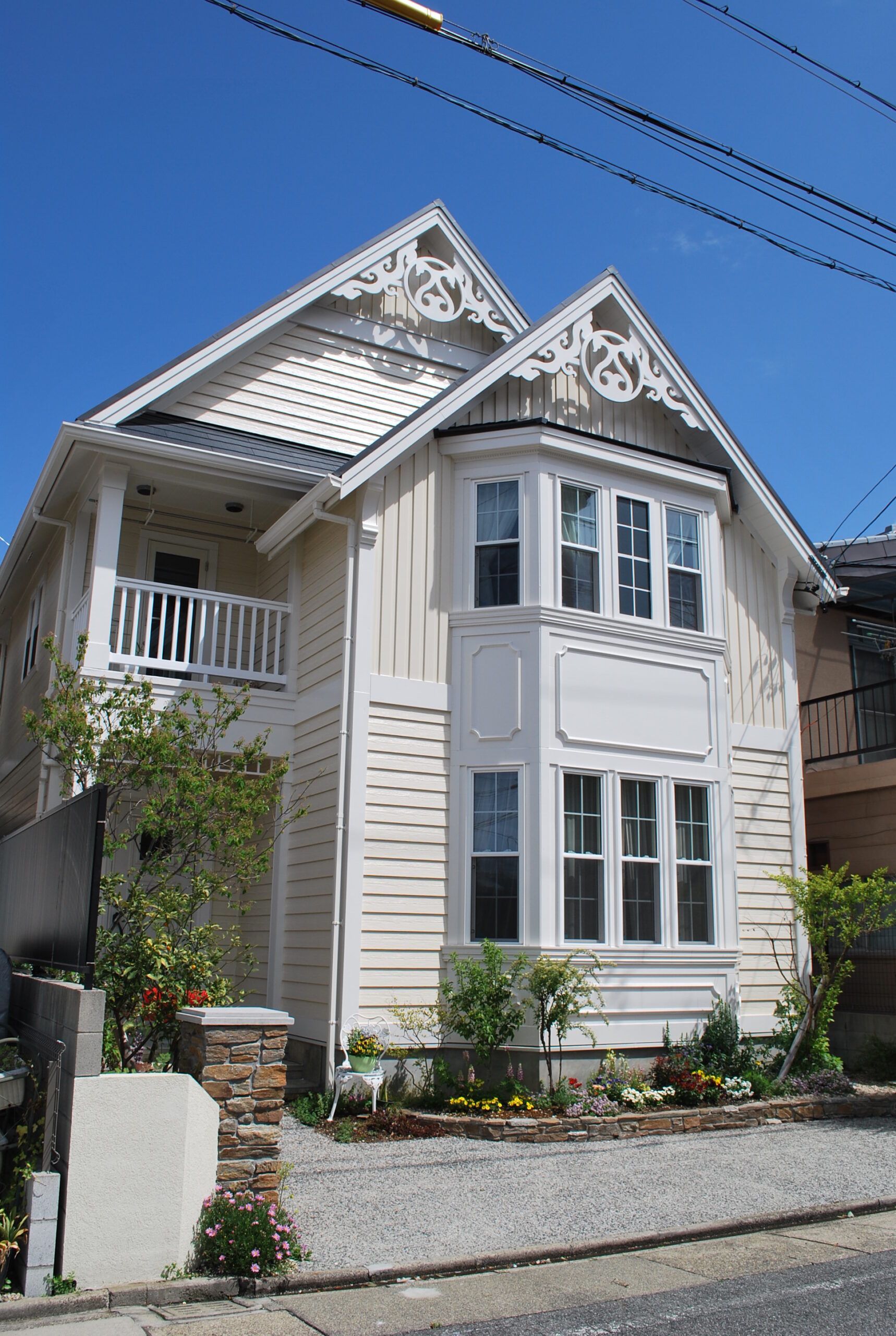 華やかな見た目のビクトリアンスタイルの外観は、住まいに美しさを求める人にとって憧れとなることでしょう。室内はお子さんと一緒にお菓子作りが楽しめる、アイランド付きL形キッチンをはじめ、スキップフロアーが素敵なカーペット敷きのリビング、両サイドに本棚を設けたベンチシートなど、「私もこんな風にしたい」と奥様が共感する心ときめく空間に仕上がっています。