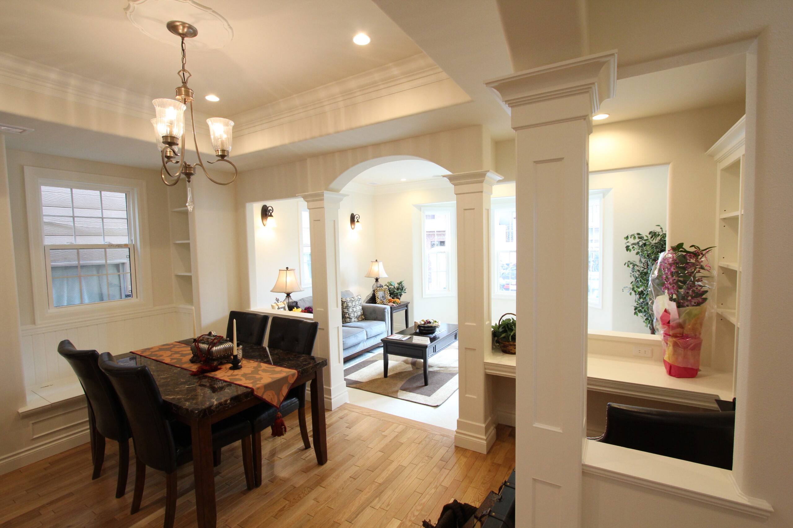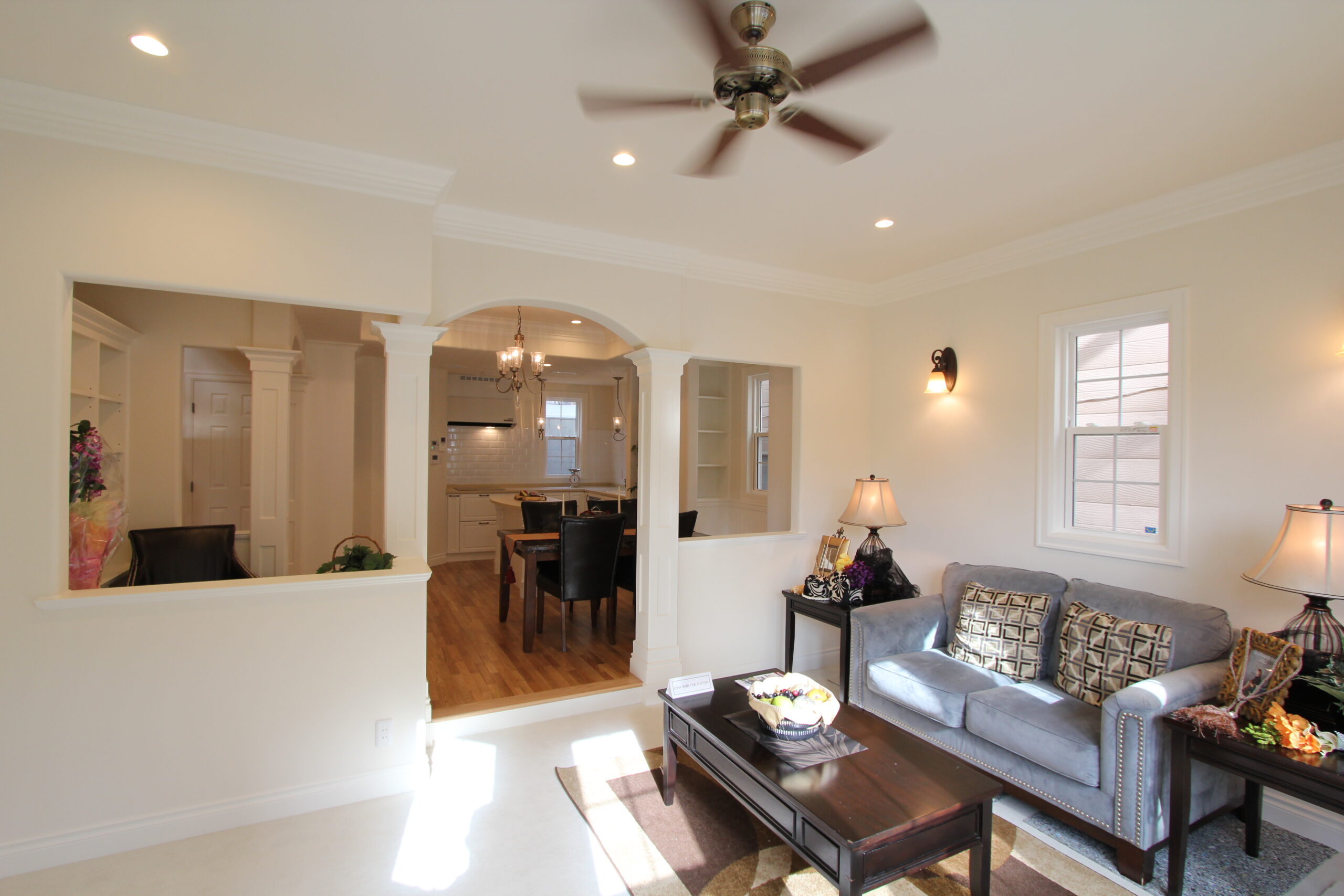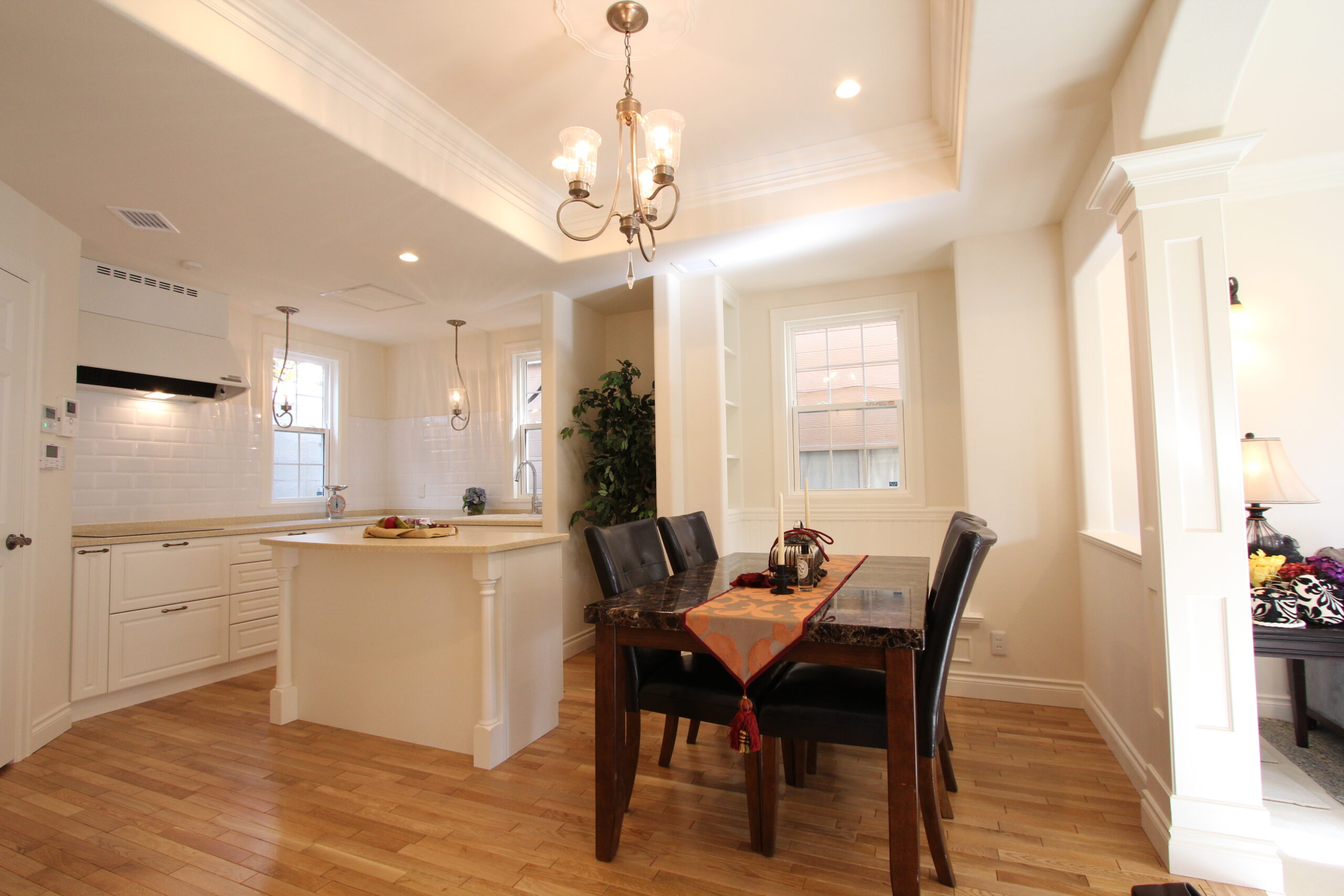 華やかな見た目のビクトリアンスタイルの外観は、住まいに美しさを求める人にとって憧れとなることでしょう。室内はお子さんと一緒にお菓子作りが楽しめる、アイランド付きL形キッチンをはじめ、スキップフロアーが素敵なカーペット敷きのリビング、両サイドに本棚を設けたベンチシートなど、「私もこんな風にしたい」と奥様が共感する心ときめく空間に仕上がっています。
