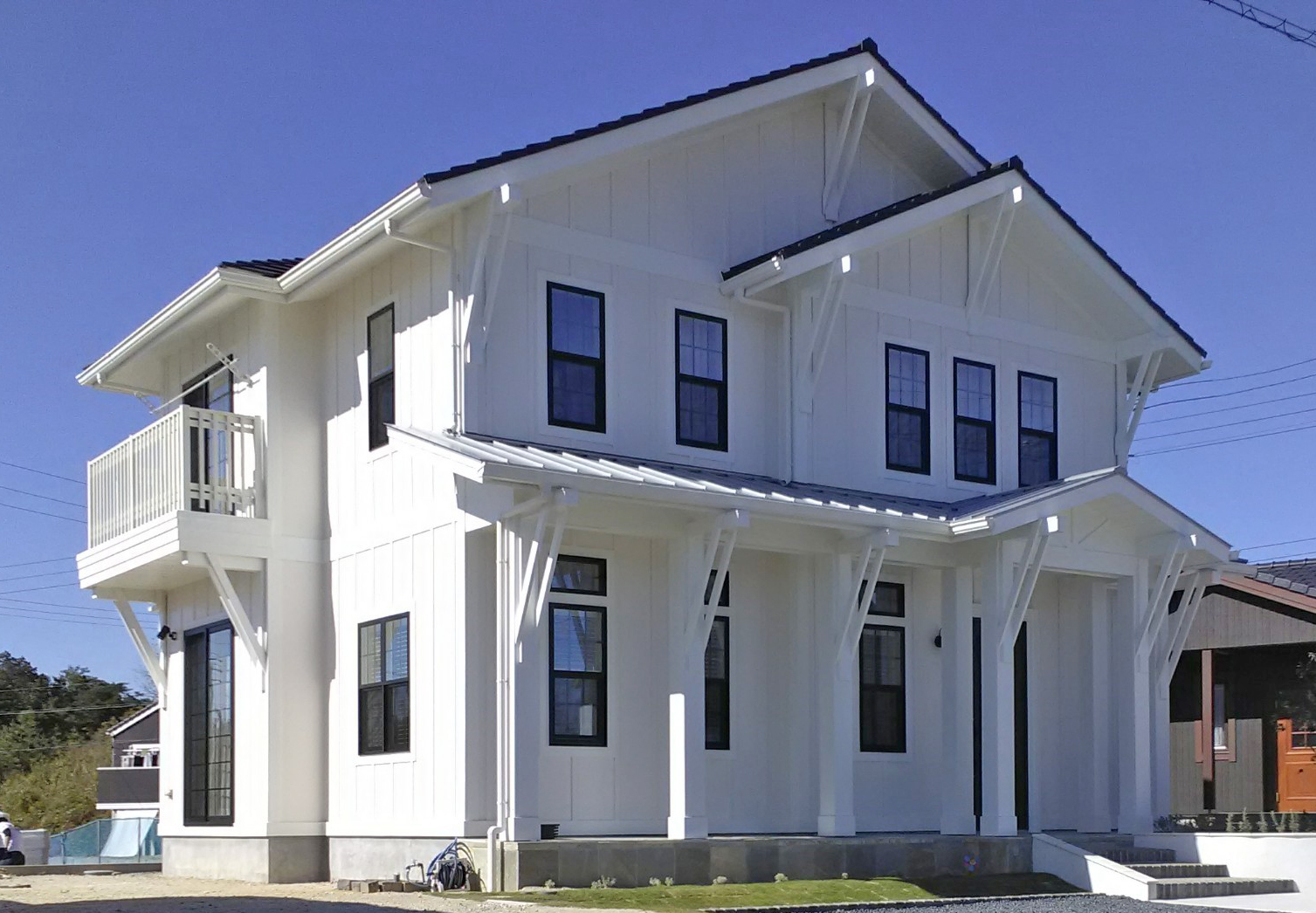 お庭でお友達を呼んでバーベキューを楽しめるお家。ブラックウィンドウに、縦ストライプの外壁、 大工さん手作りのブラケット、そして屋根材は瓦になっております。安城建築のシンプルでもかっこ良く、クラシックでも新鮮さがある新しいコンセプトモデルの家になります。