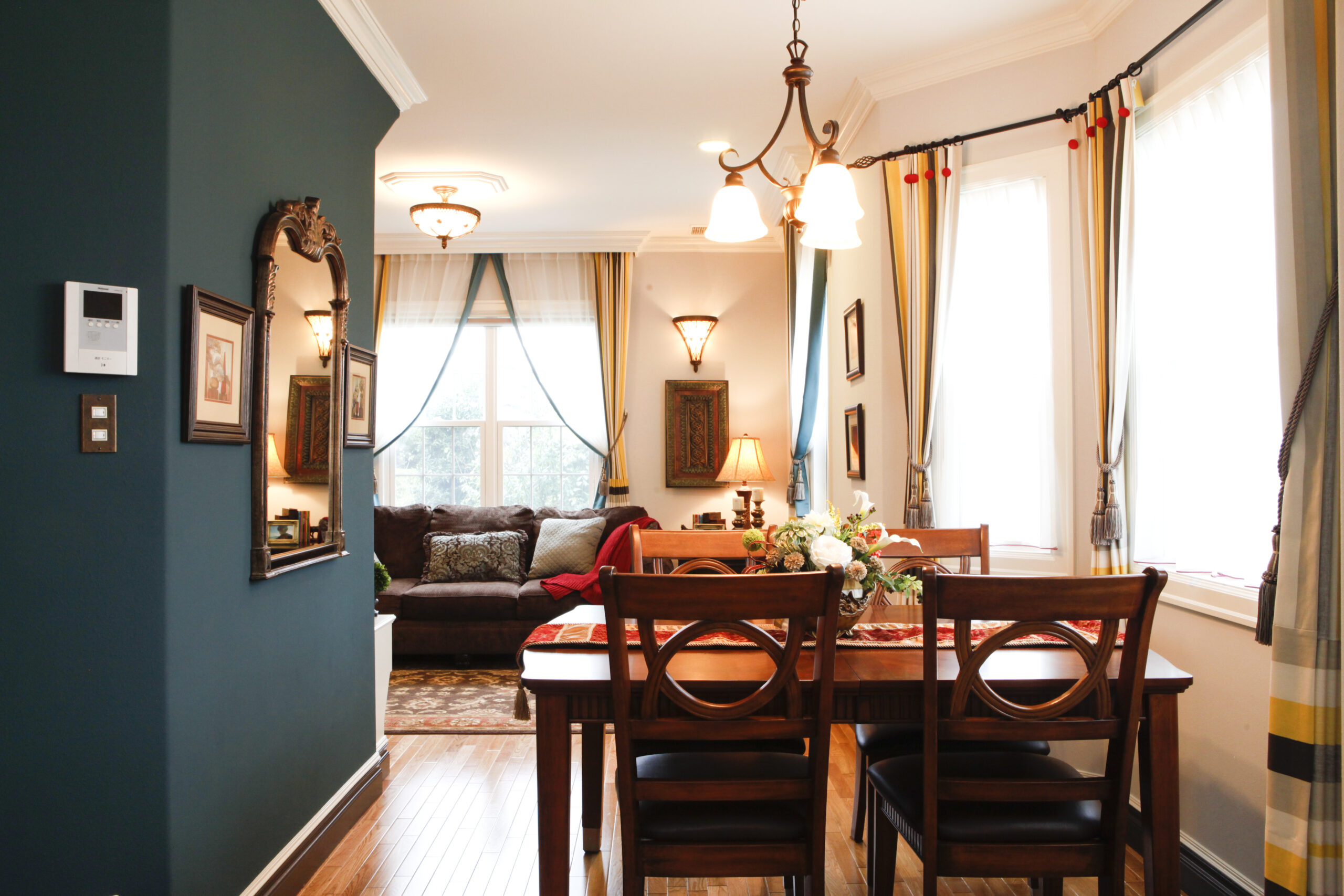 隣にご両親、おじいちゃん、おばあちゃんが住む母屋があります。近くに親族がいてくれることで安心して暮らすことが出来ます。安城建築のマイホームを10年夢見て来たお施主さまの深い想いが、この家に込められています。床面積35坪の連続した空間の中には、玄関の吹き抜け、リビング階段、2階のバルコニー、奥さまの家事室、多目的ルームがあります。限られた広さを、より有効的に使えるように考えられています。