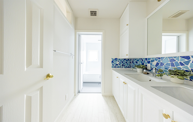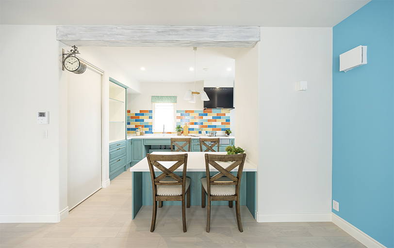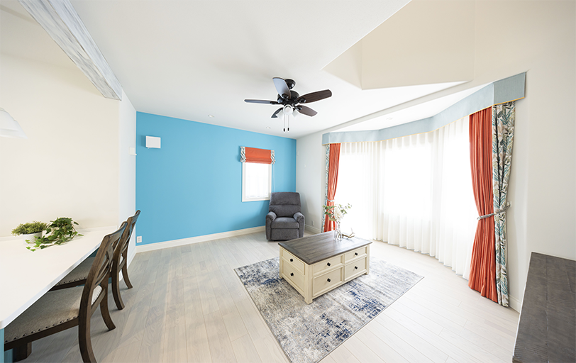 外観デザインはサンフランシスコに見られるようなスティックヴィクトリアンですが、この鮮やかなブルーのカラーリングがリゾートを連想させます。