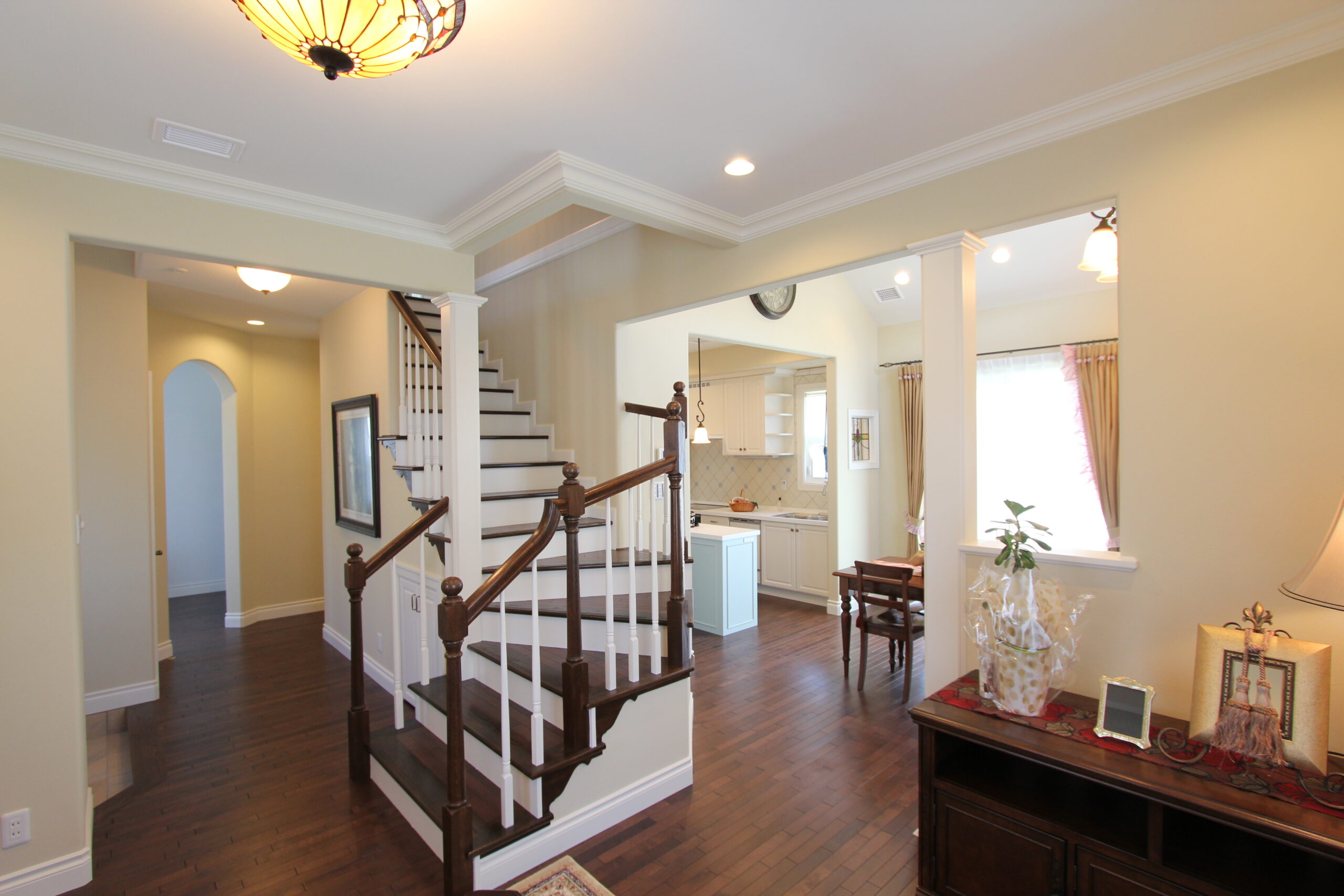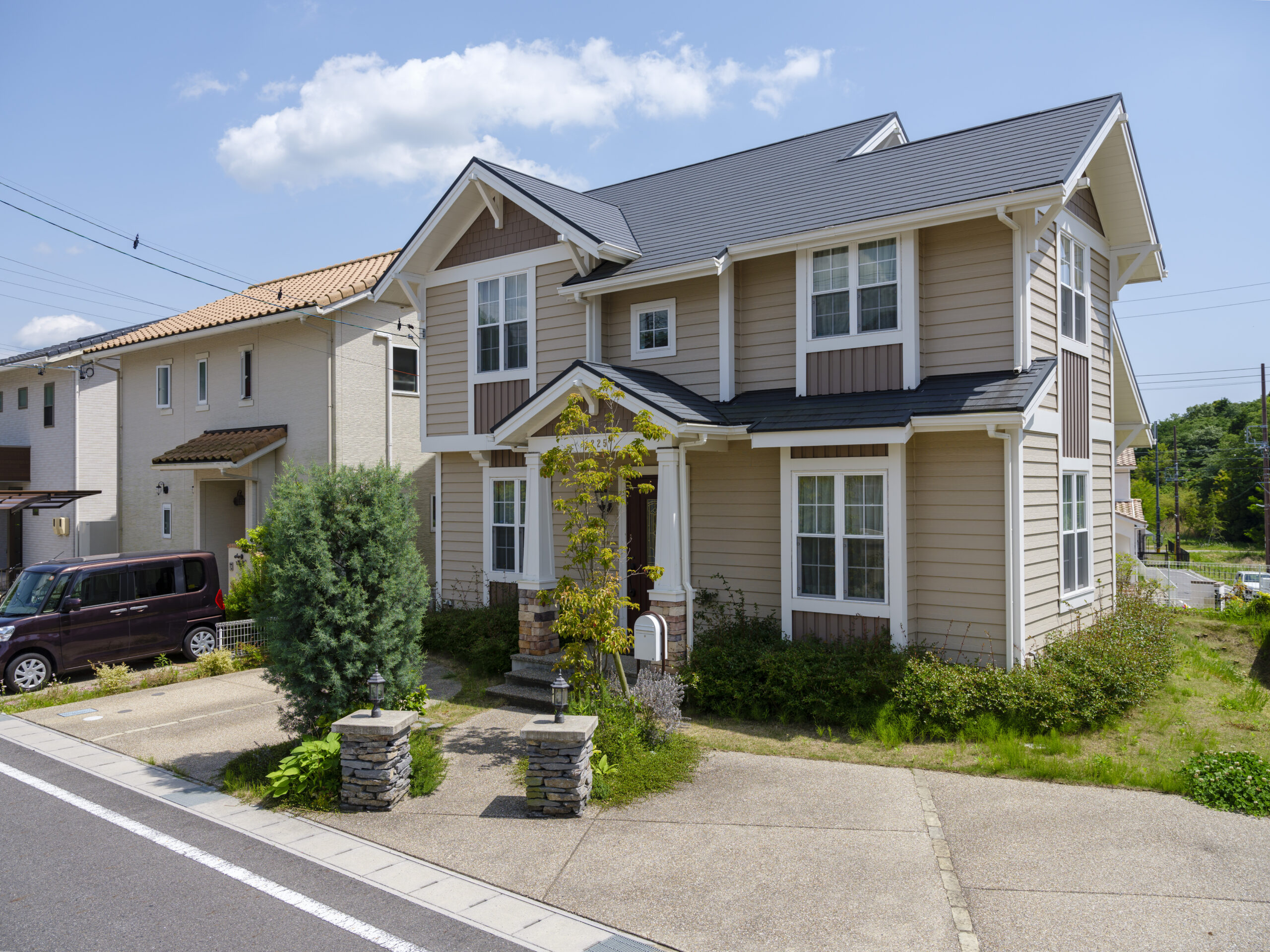 一見すると外国に建っている家と思える素敵な家の完成です。外観のデザインは、上品さを感じるクラフツマンスタイルです。室内はダイニングを吹き抜け斜天井とし、家族が自然と集まる心地良さのある空間となっています。その場に立つと、穏やかな雰囲気の中で笑い合う温かな家族が想像出来ます。