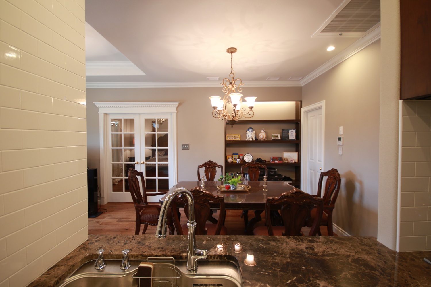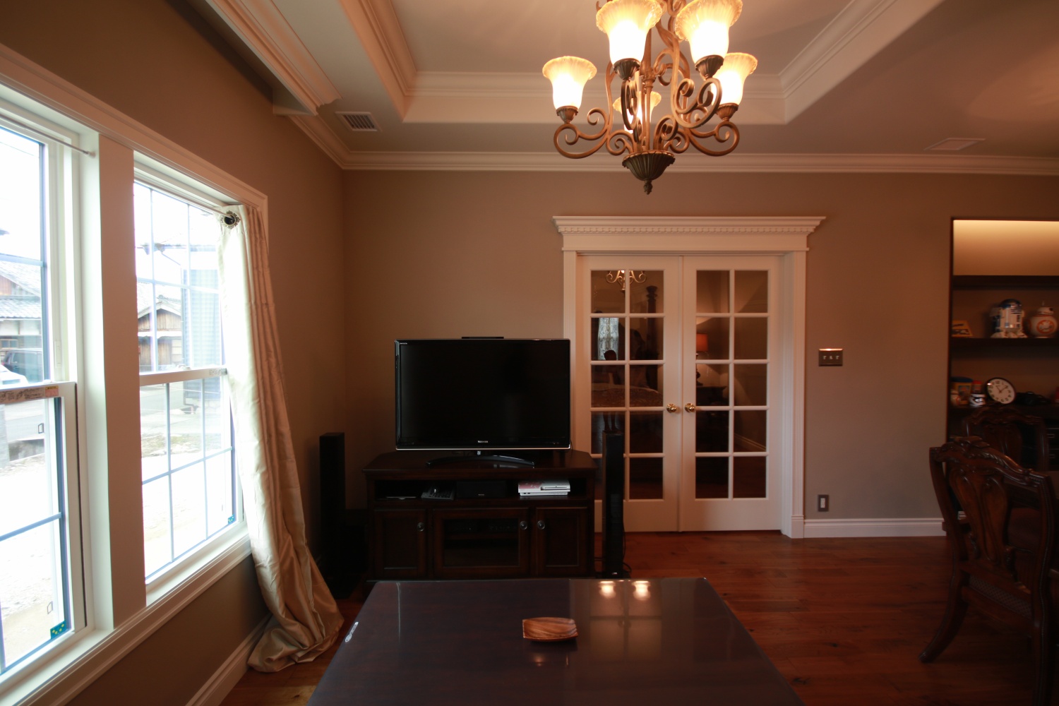 「こんな家に住みたい」と憧れ続けた家の実現です。家族みんなが笑って話し合える、そしてお友達を招きたくなる素敵な家です。4LDKの部屋構成に広めのパントリーの他、収納、飾り棚が多めに設けられています。お料理も楽しく、そして招いたお友達に心からのもてなしが出来る、奥様活躍の空間となっています。